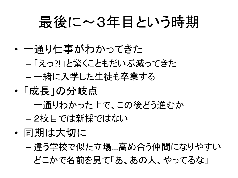 最後に3年目の先生方へのメッセージ。イエーイ、平成7年度江東区立小中学校の初任者のみんな、見てる~?
