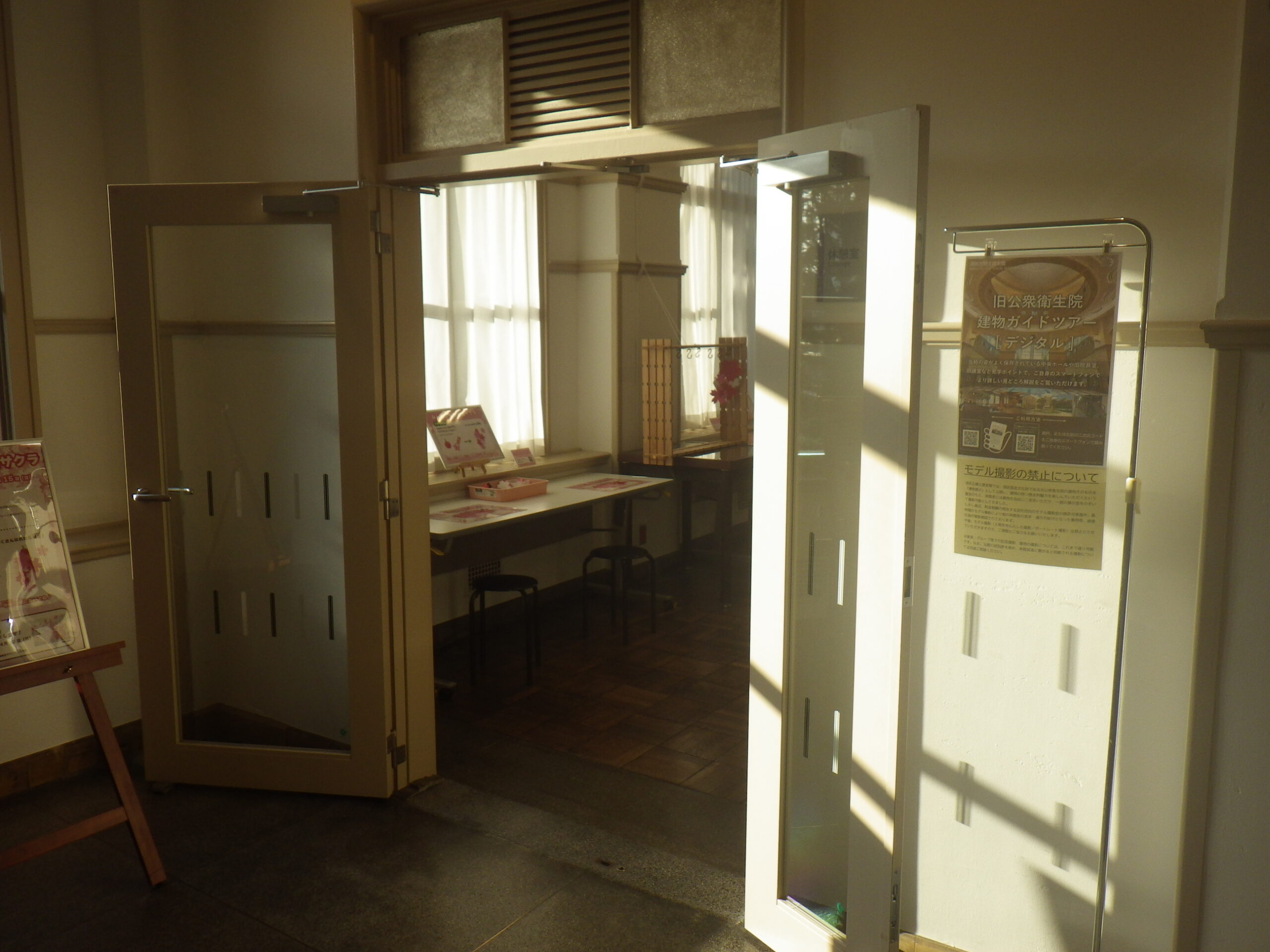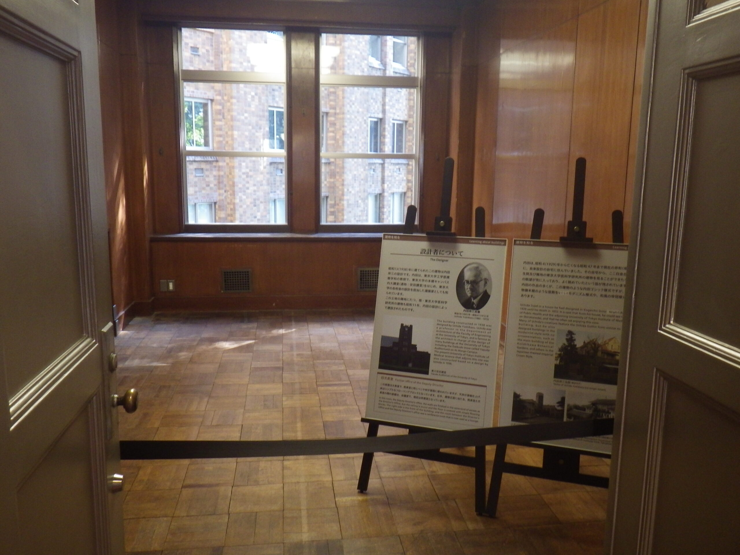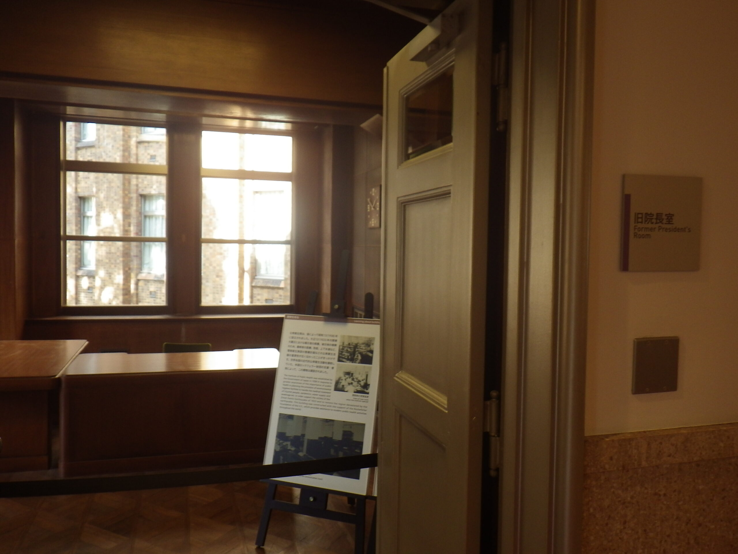 旧院長室、旧次長室は中に入れません。外から見るだけです。これは単に展示物の保護、という側面だけではなく、部屋に人が常に入れる状態だと、「居室」になってしまい、消防などの規制が厳しくなり、いろいろこのままで残せない部分が出てきます。そこで、人が普段はいらない「倉庫」扱いにして部屋に手を加えないでいいようにした。つまり、保存を優先したわけですね。なんかかっこいいな。
