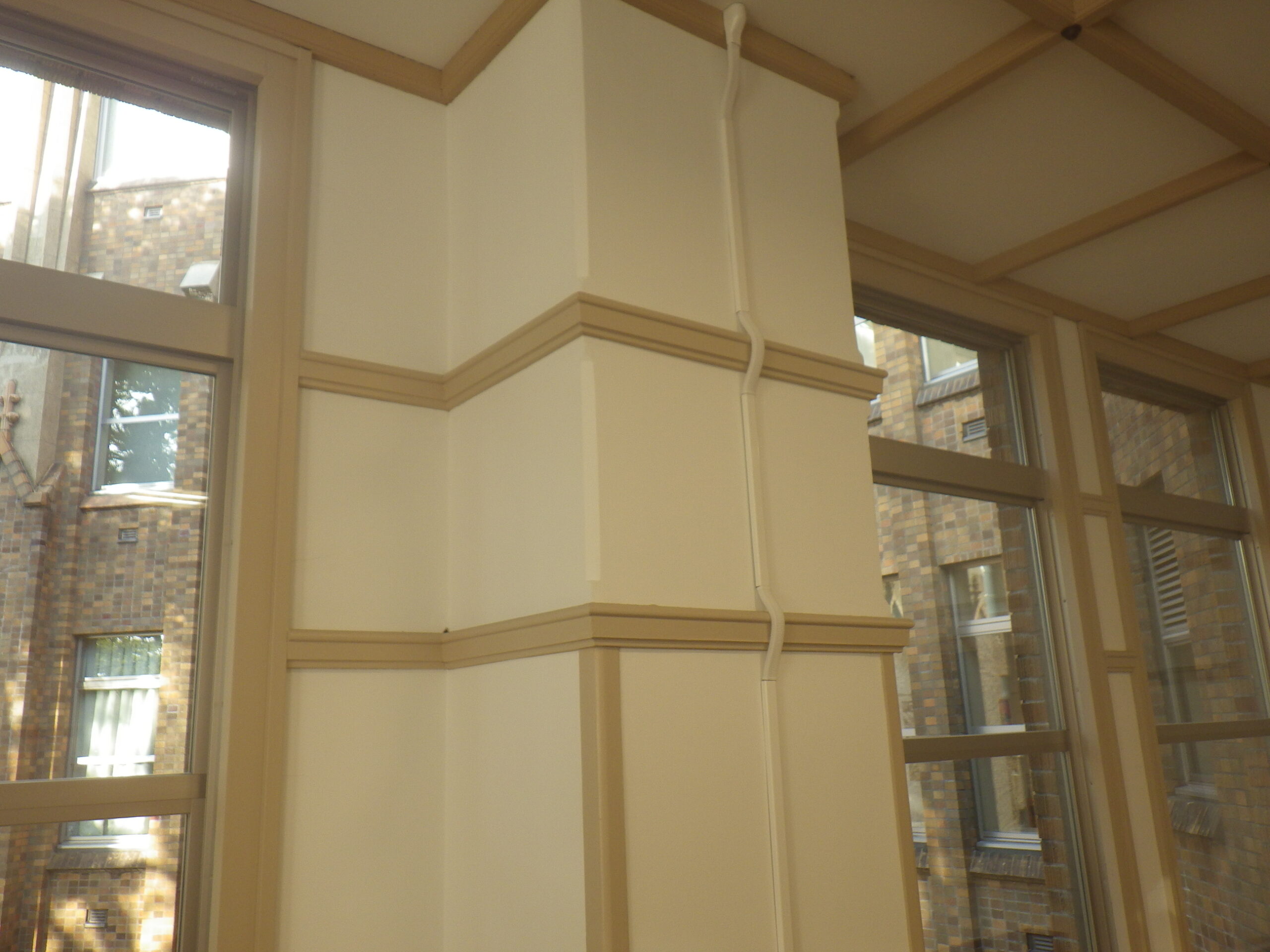 このエレベーターは公衆衛生院時代には使われていたのですが、改修で別のところにもっといいエレベーターを設置し、エレベーターシャフトはパイプスペースになっています。ですが、改修前葉ここにエレベーターがあったよ、とあえて残しているのです。
