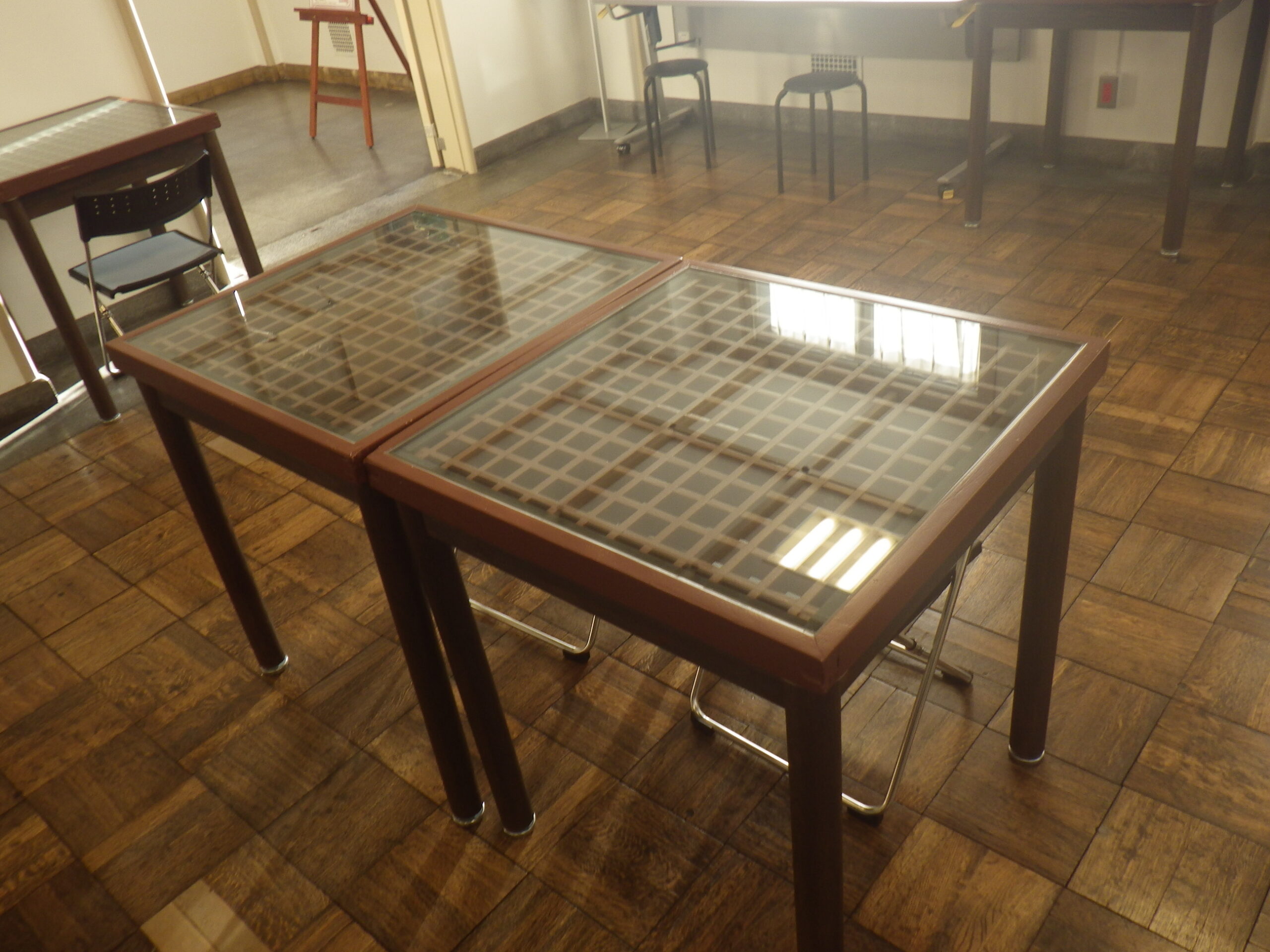 この机はもともと排気口(でしたっけ)なんかに使われていましたが、改修でいらなくなったので捨てるにはもったいないということで机にしてもらったそうです。