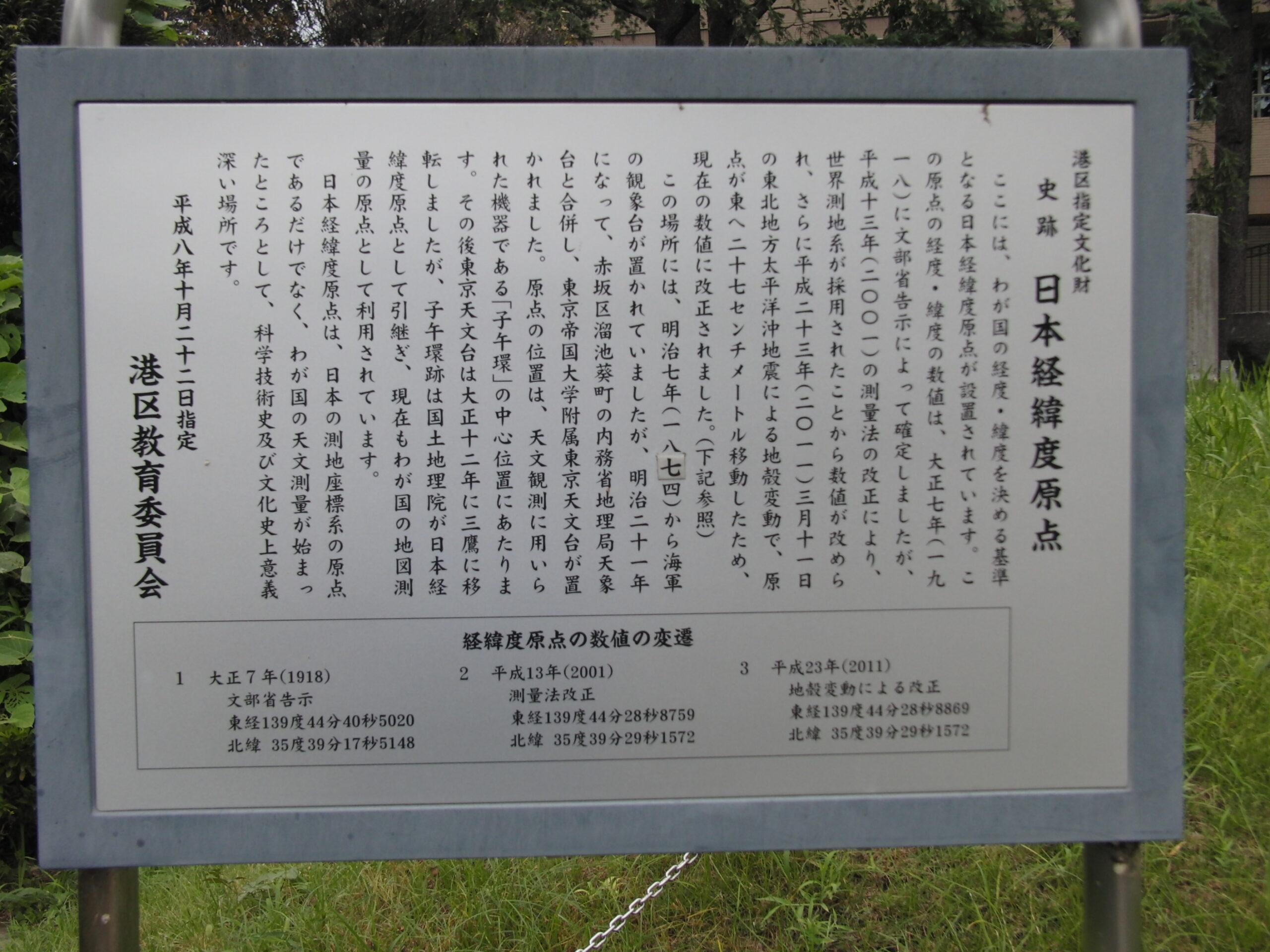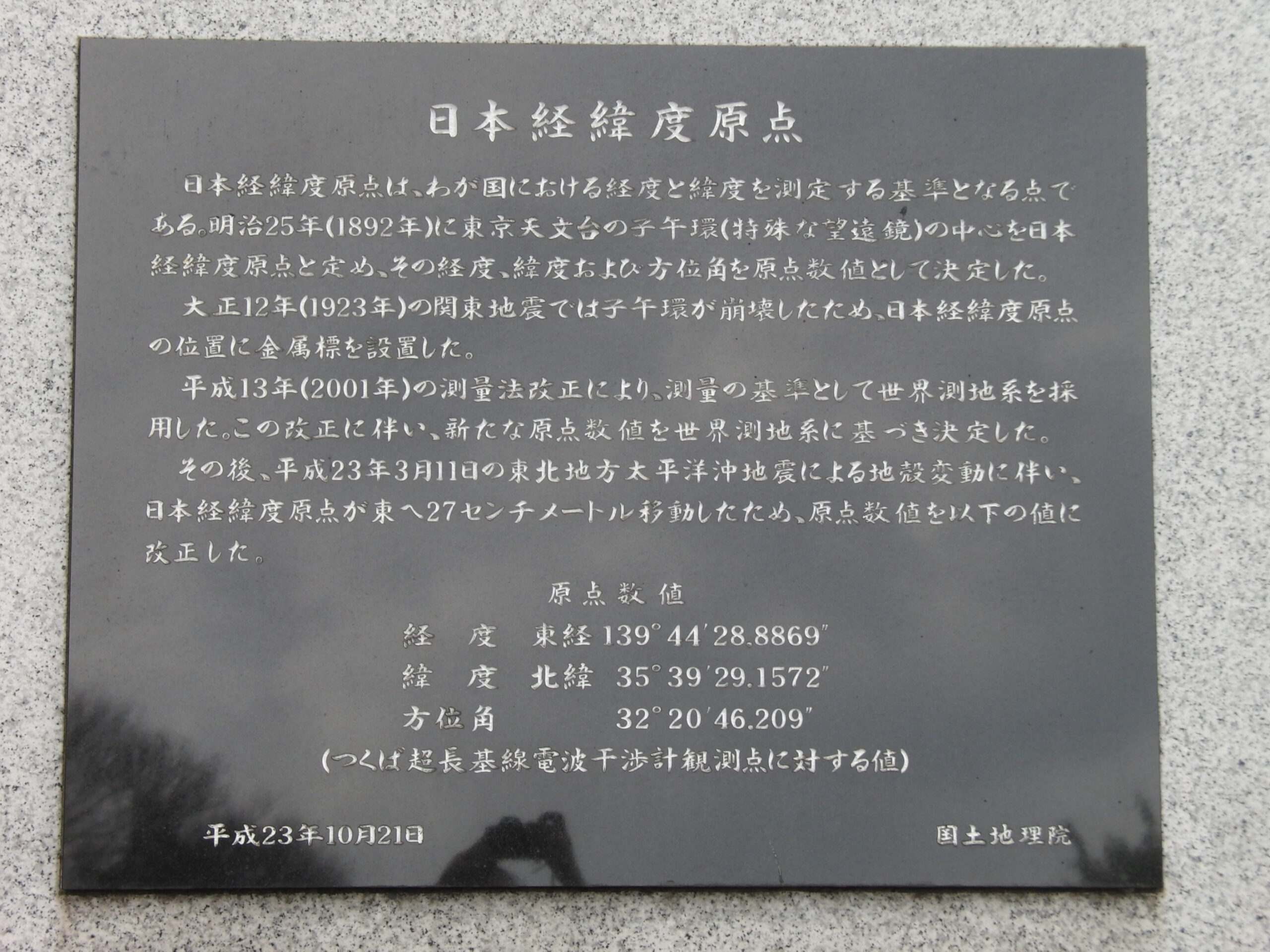 一 地点 東京都港区麻布台二丁目十八番一地内日本経緯度原点金属標の十字の交点