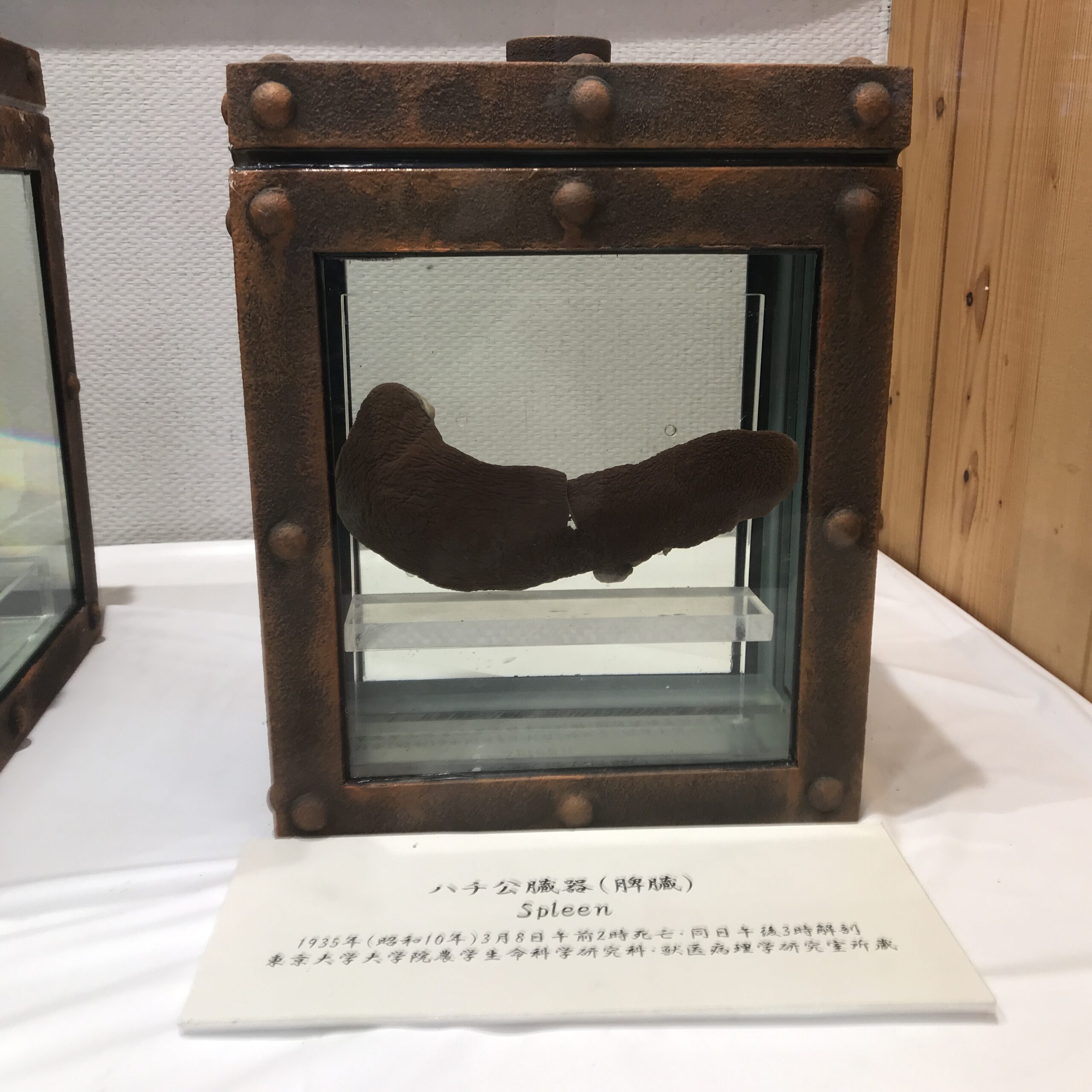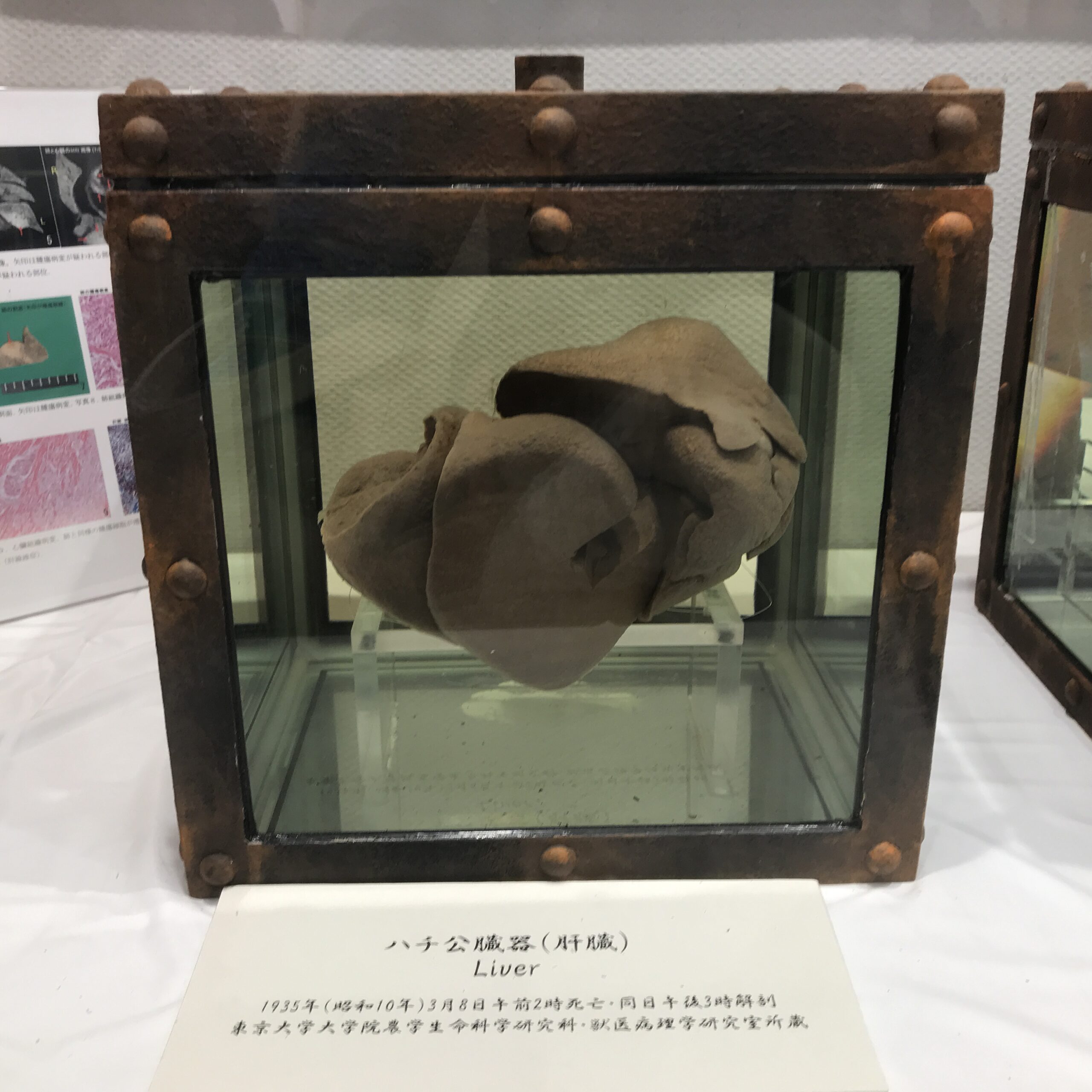 忠犬ハチ公の臓器。ハチ公の死因はフィラリアだったが、死後76年経った2011年に、心臓と肺にがんがあったこともわかりました。