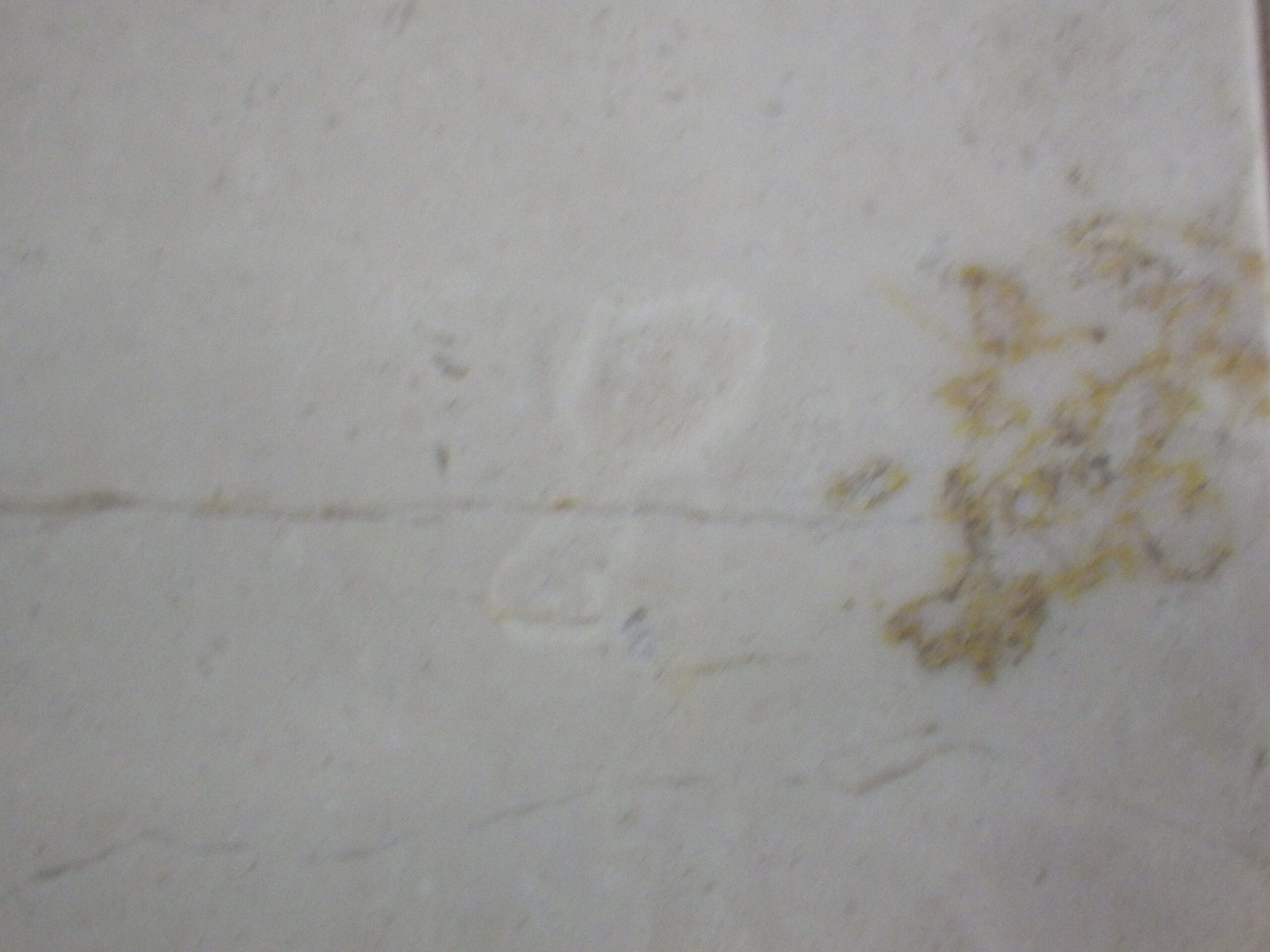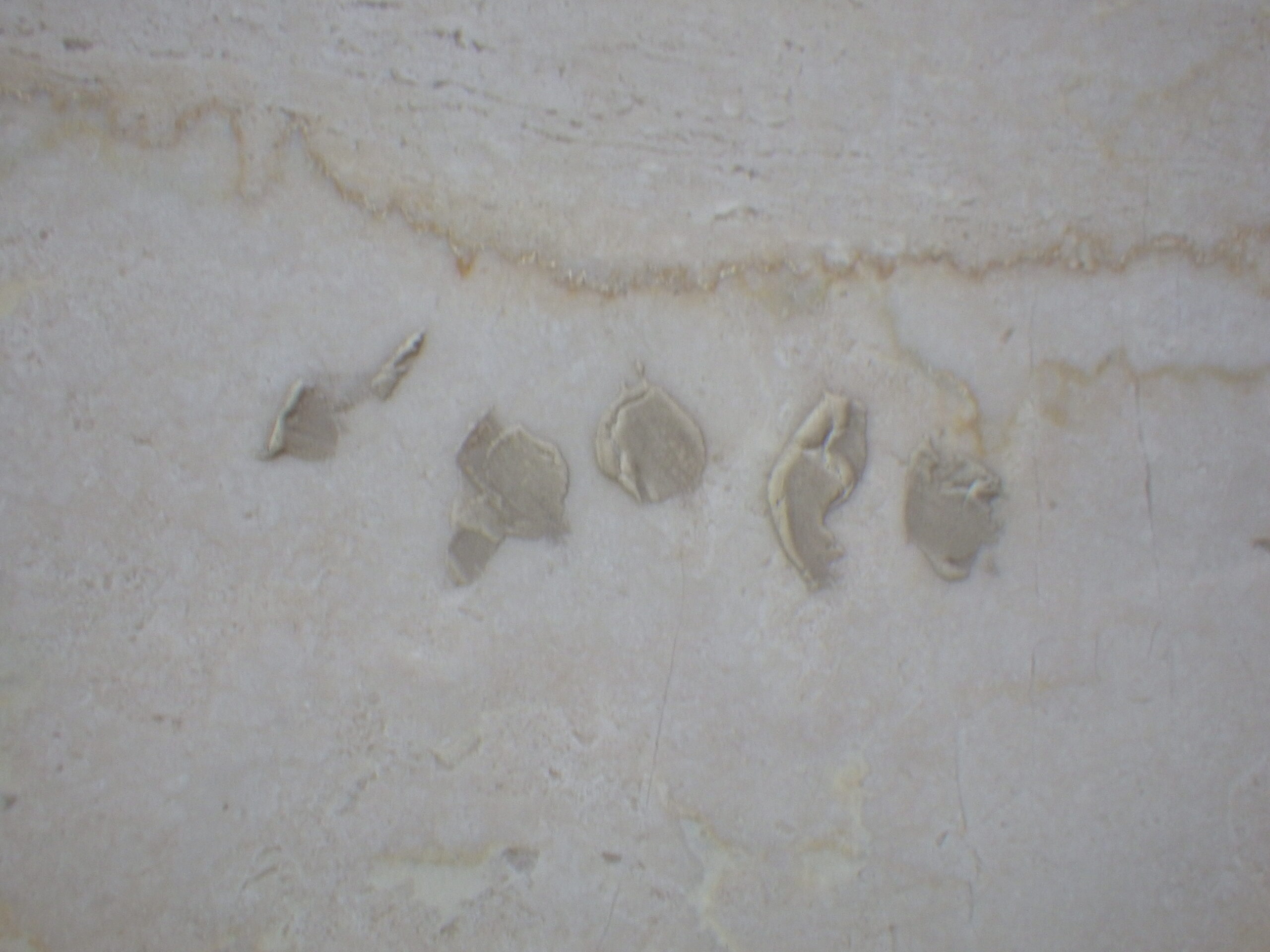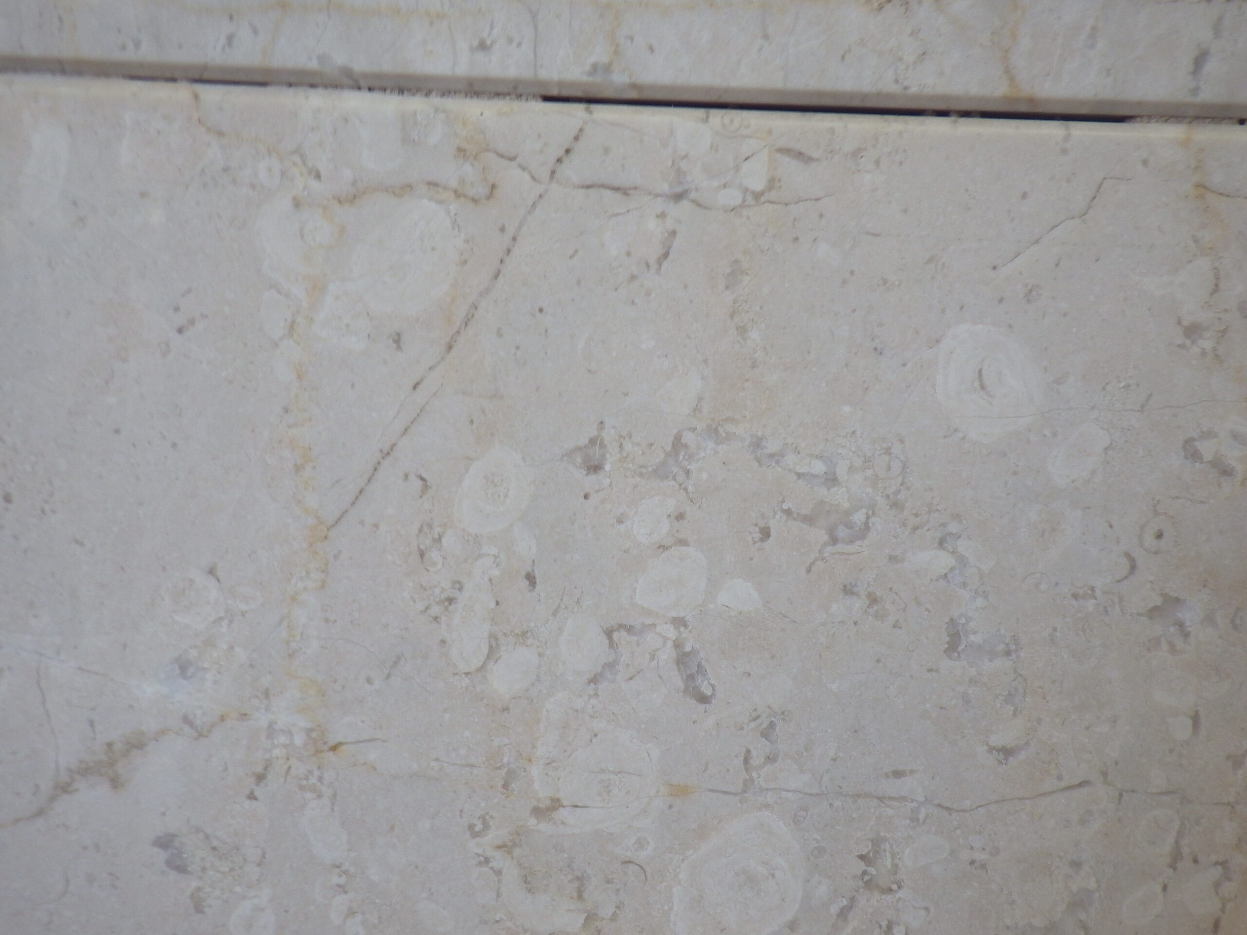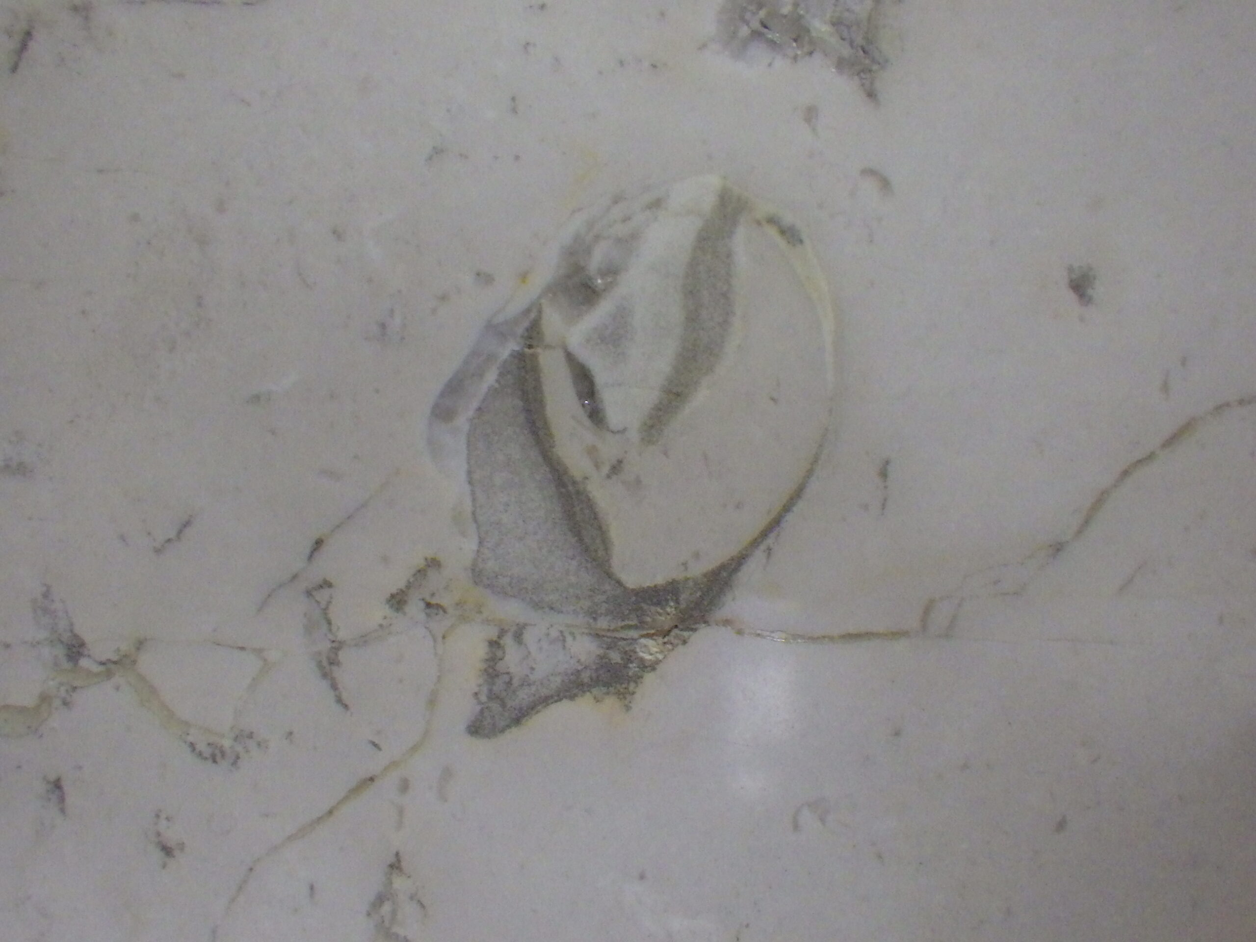 2201 【街化石】信交ビル 街化石 2026.02.27 秋葉原駅の昭和通り口の前に信交ビルってビルがありまして、自販機の横から入った入口のところ そこの壁がイタリア産の大理石、ボテチーノ (Botticino) 。んで貝っぽい化石。