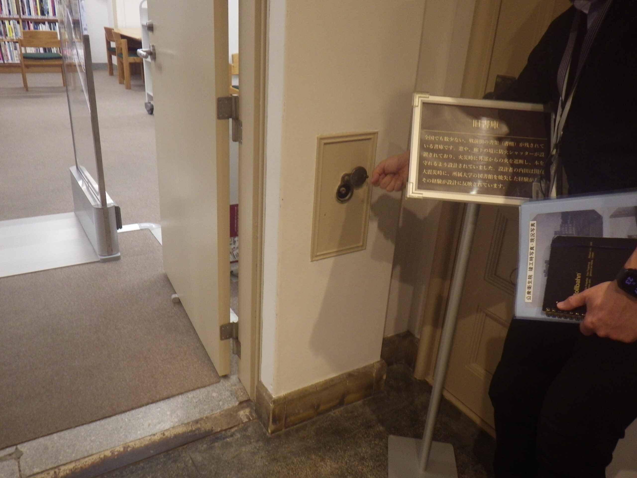 図書館奥の旧書庫。3フロアのうち真ん中の階で、下の階も見えますし、