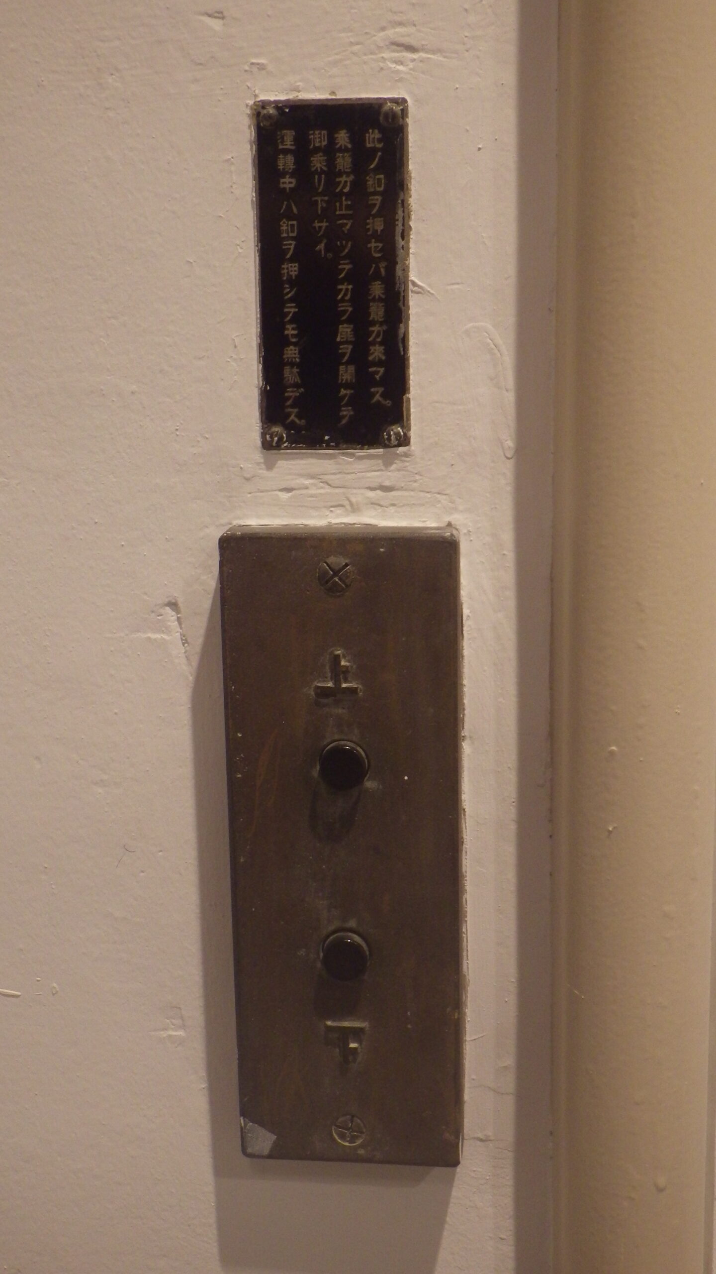 「運轉中ハ釦ヲ押シテモ無駄デス」というキッパリとした情け容赦ない表現もさることながら、「乗籠ガ止マツテカラ扉ヲ開ケテ御乗リ下サイ。」ということはまさかの如く、手で開けるのか?銀座の奥野ビルでは今もやってるけど。