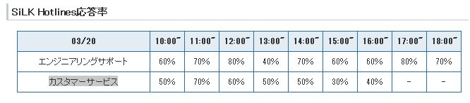 ちなみにDTIのカスタマーサービスは応答率を1時間ごとに表にして、1日ごとにグラフにして教えてくれます。