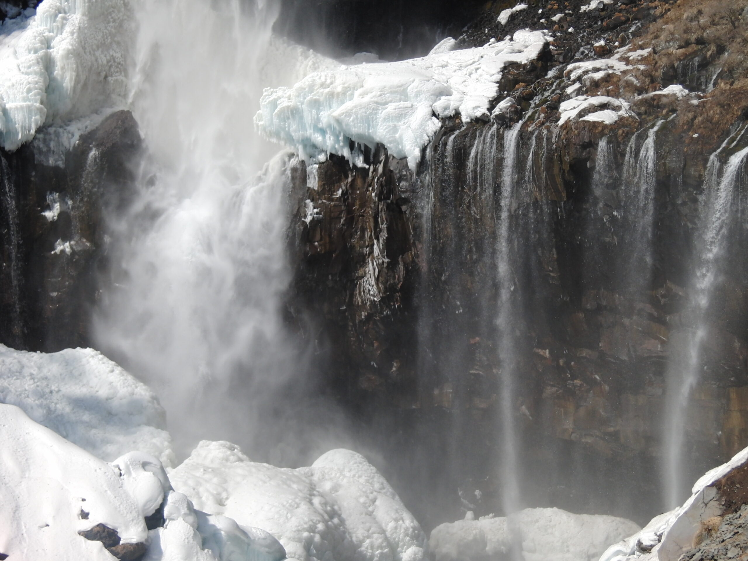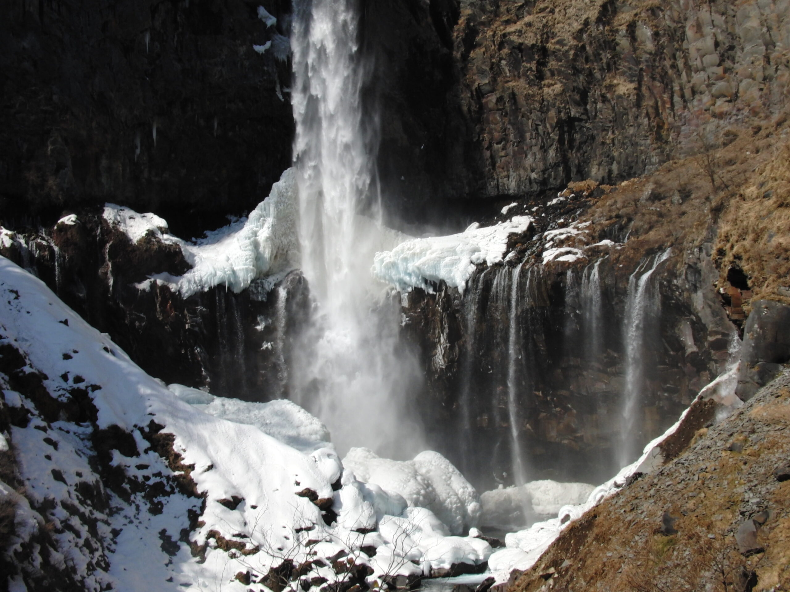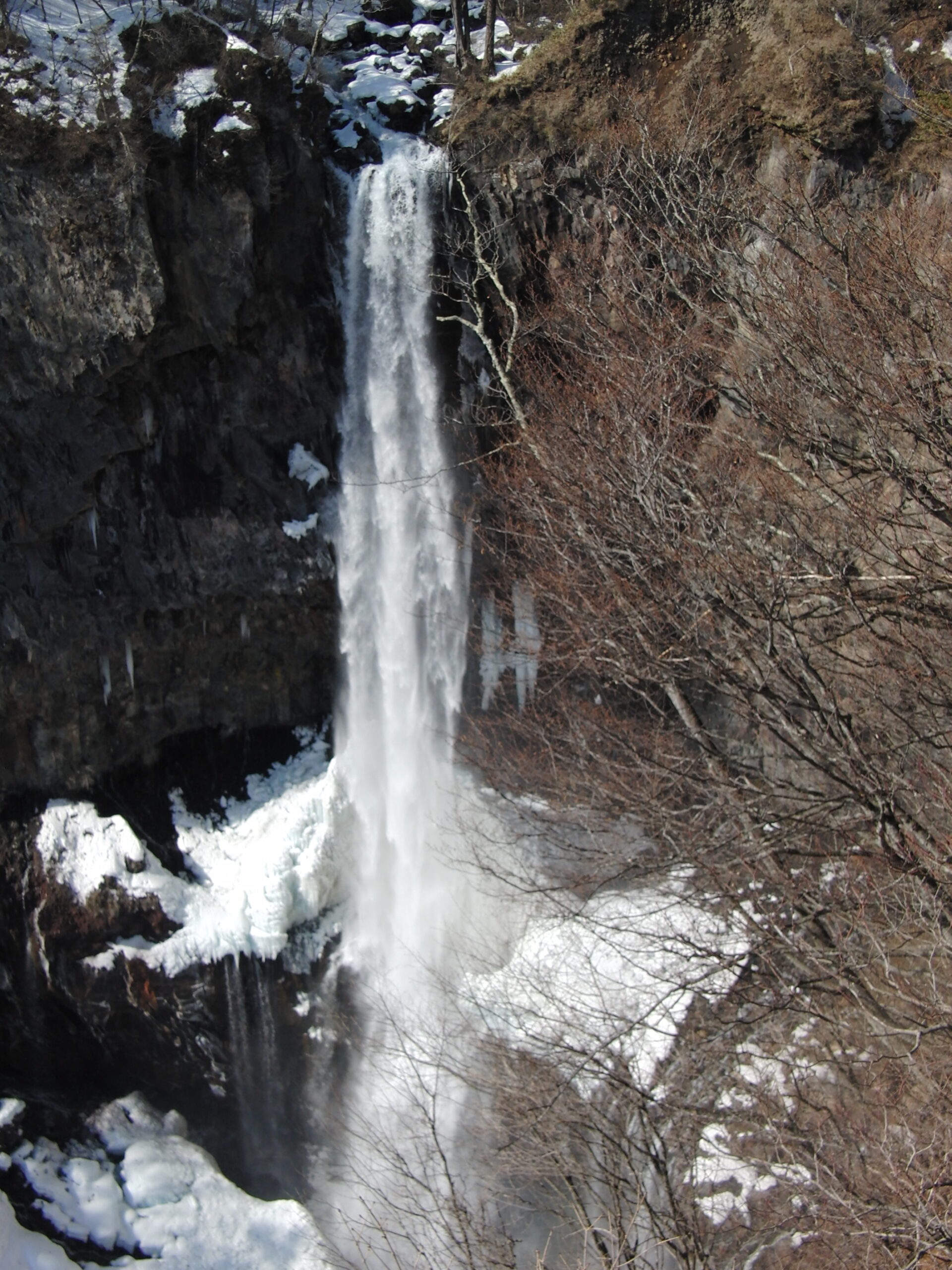 雪の残る華厳の滝。うわああああああ…としか言いようがありません。