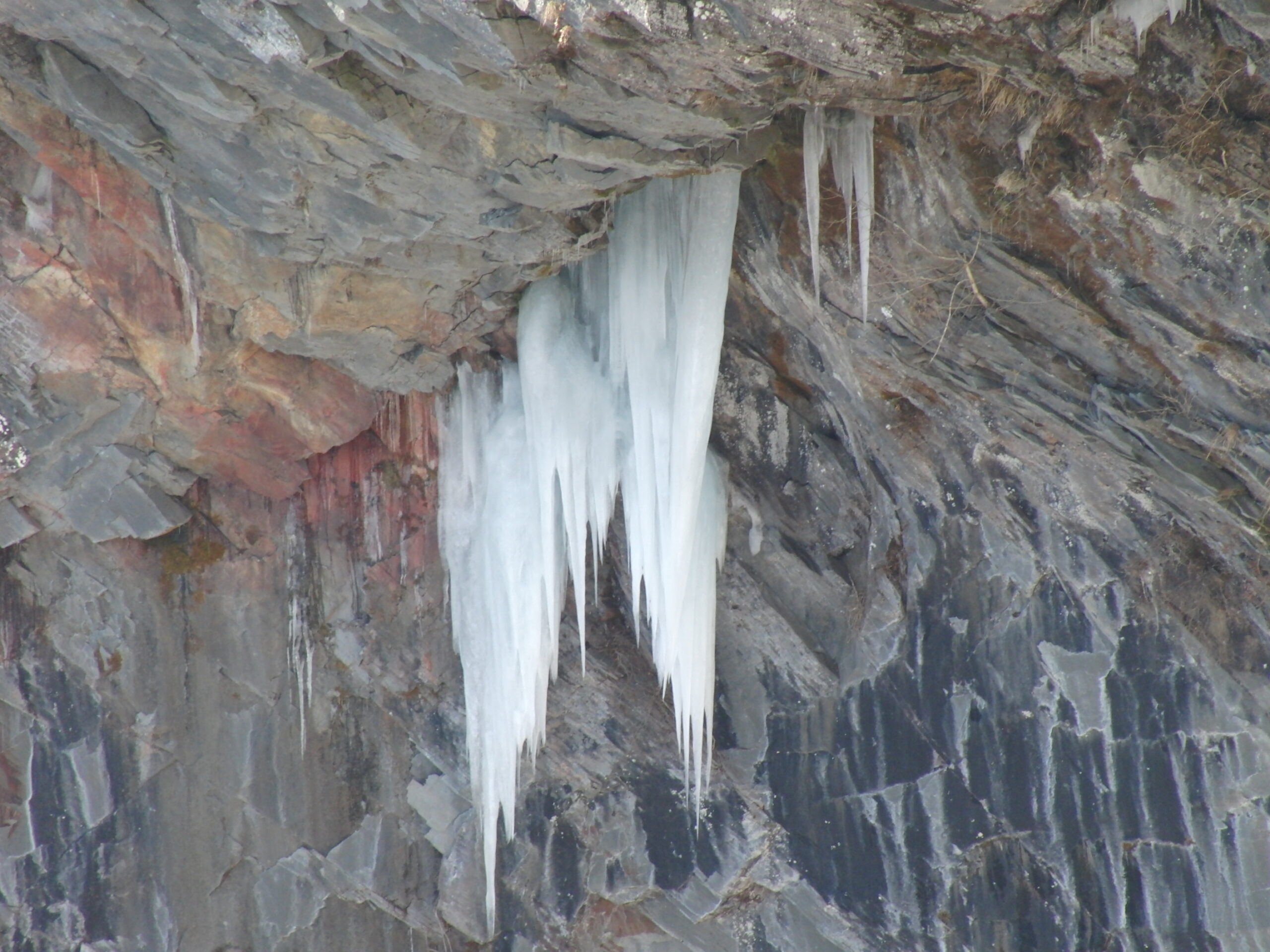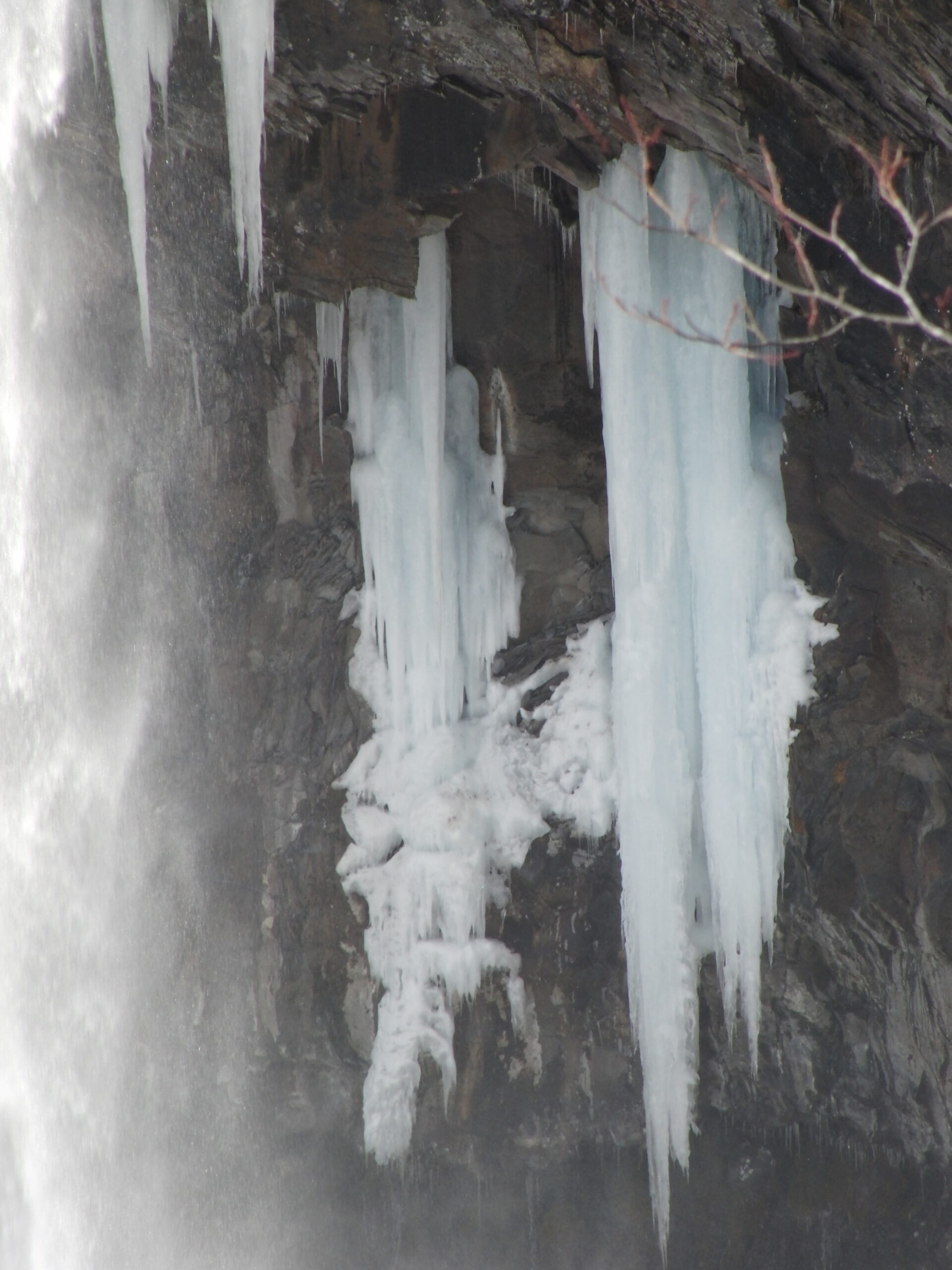ところどころ凍って「つらら」ができています。