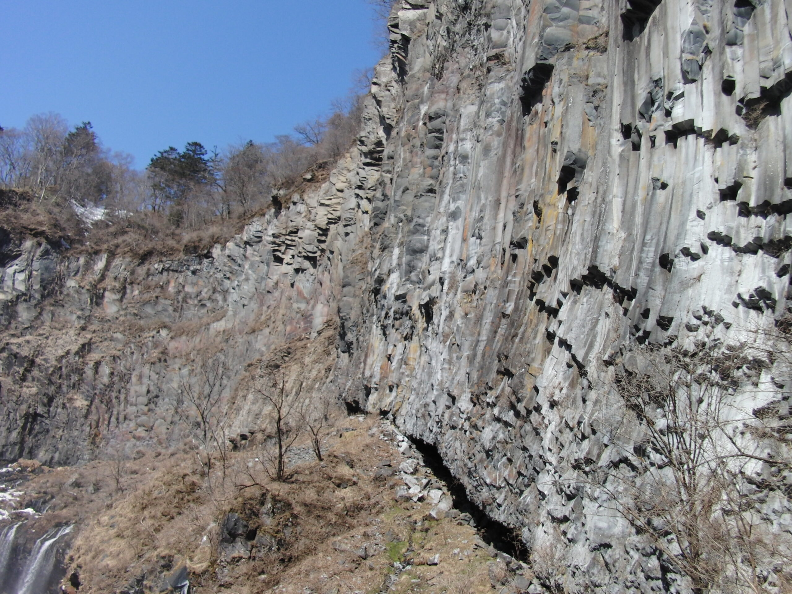 華厳滝も見事だけど、その右側にある柱状節理も見事。