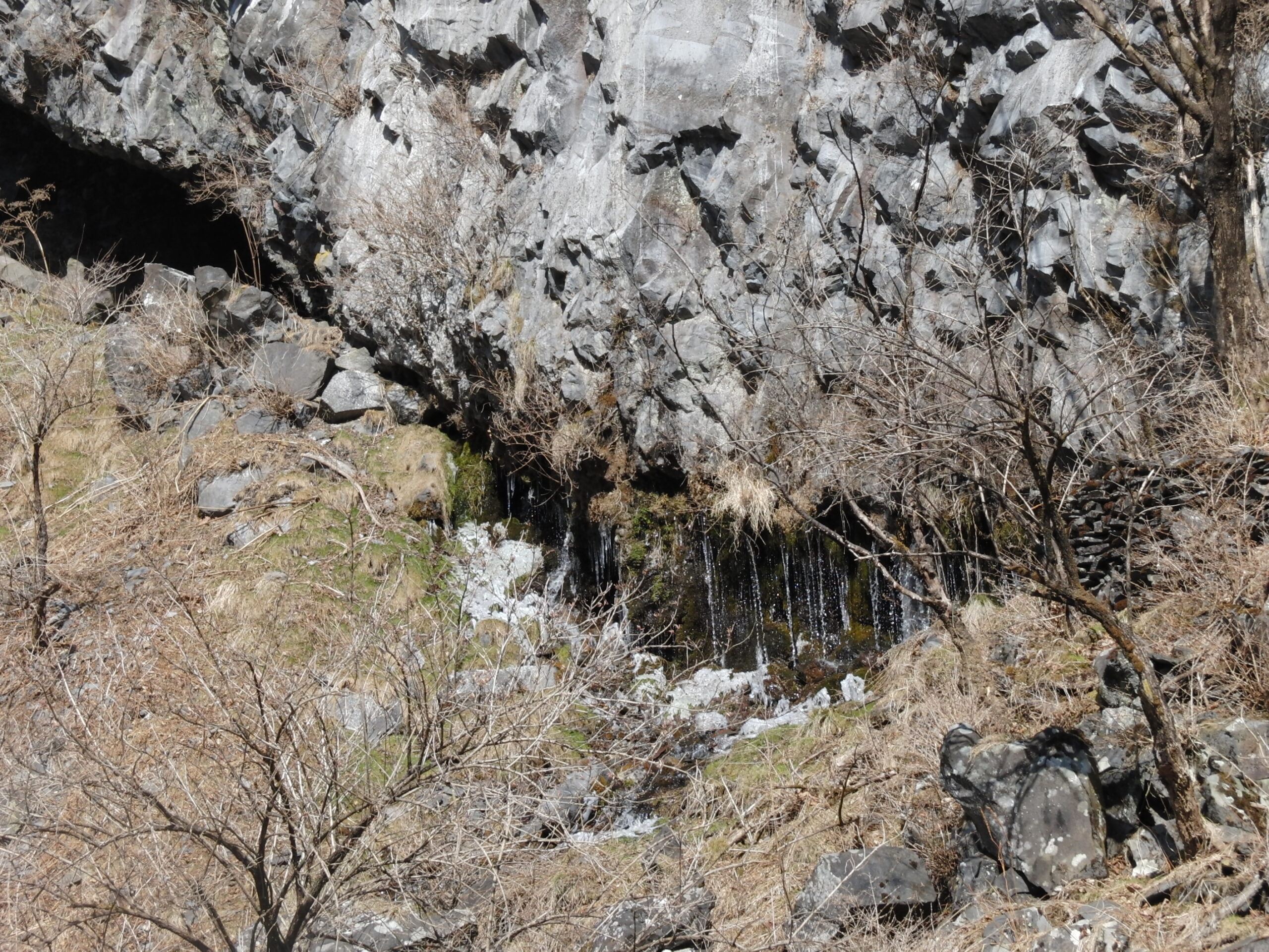柱状節理の下からも少し水が流れています。