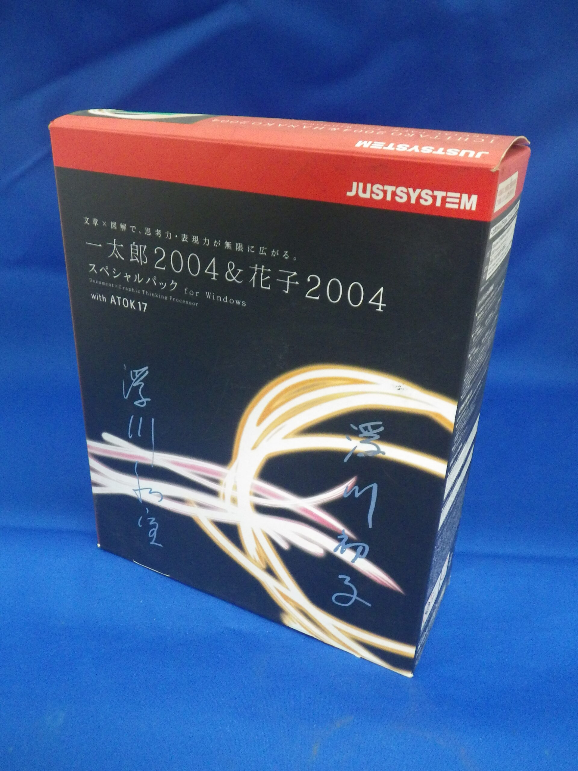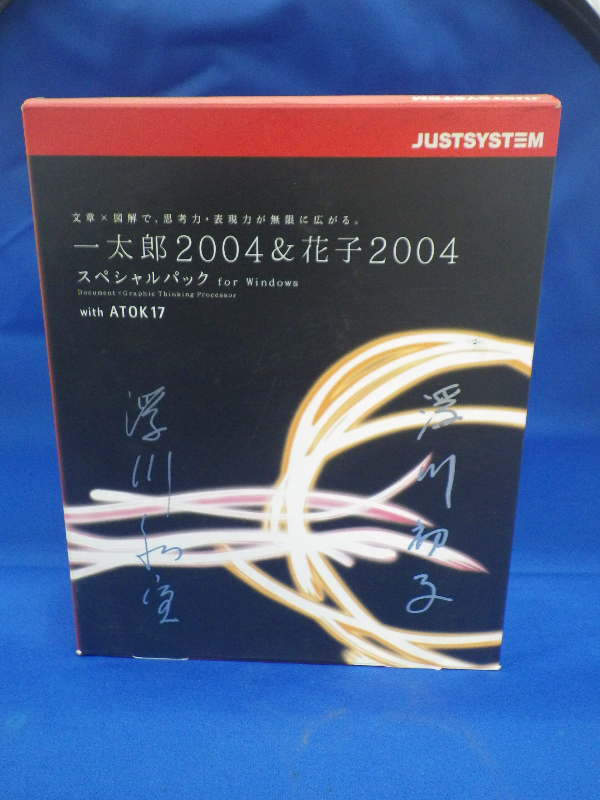 ジャストジャンプ2の完成パーティーで、くじ引きかビンゴかで当てたのが、こちら「一太郎2004&花子2004 スペシャルパック for Windows」。なんとジャストシステムの創業者夫婦、浮川和宣さんと初子さんの直筆サイン入り!