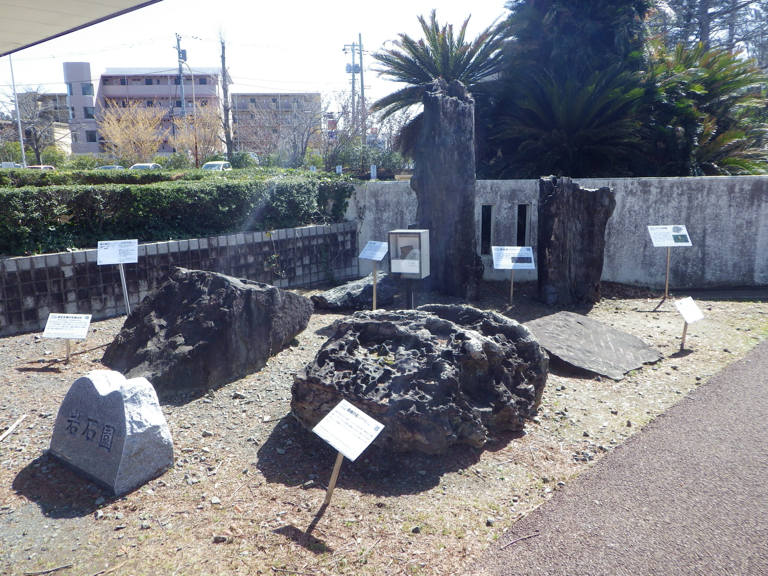 入ったところには球状のかんらん岩の他にも岩石園があります。