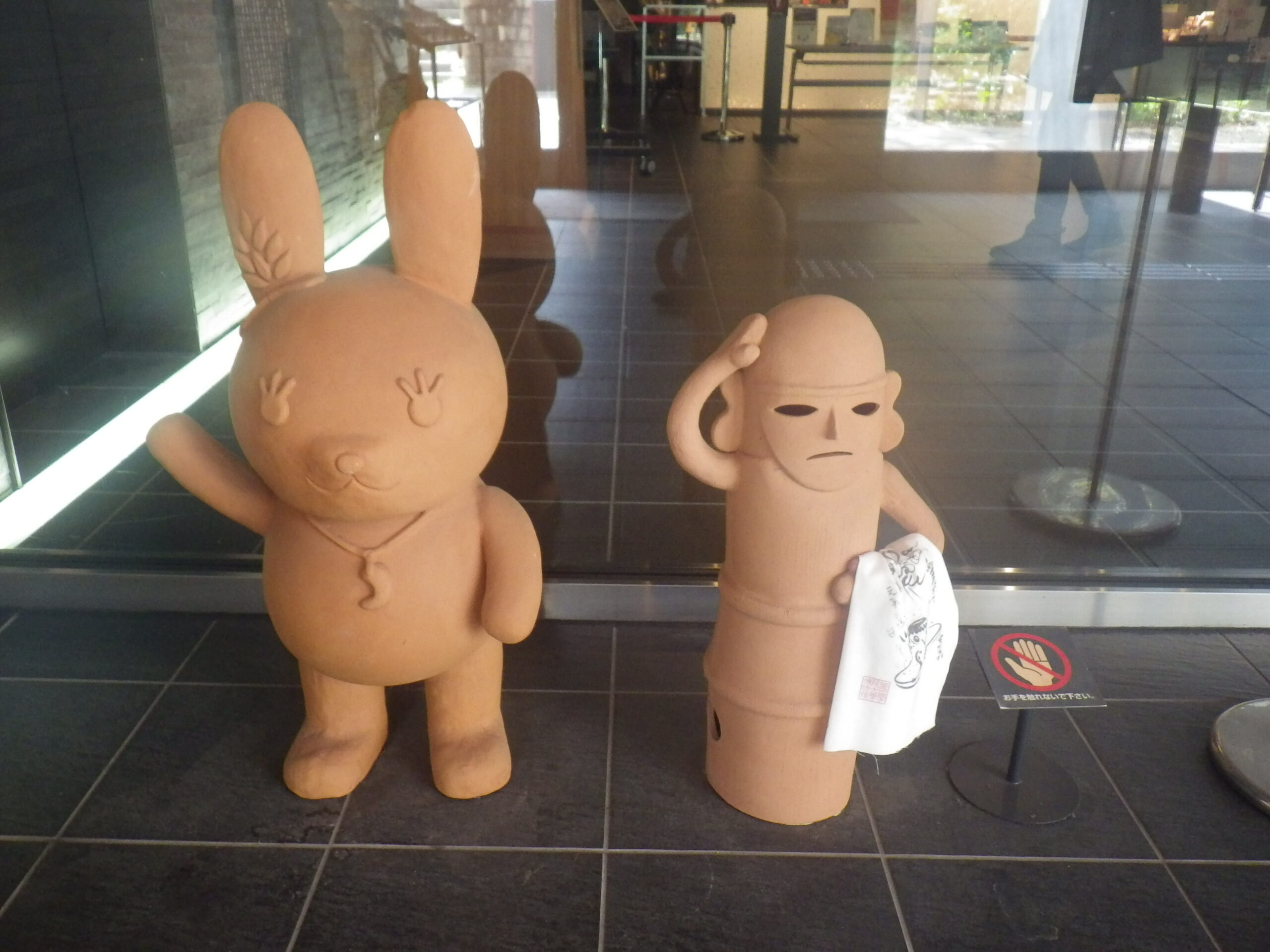 國學院大學のキャラクター「こくぴょん」と埴輪。