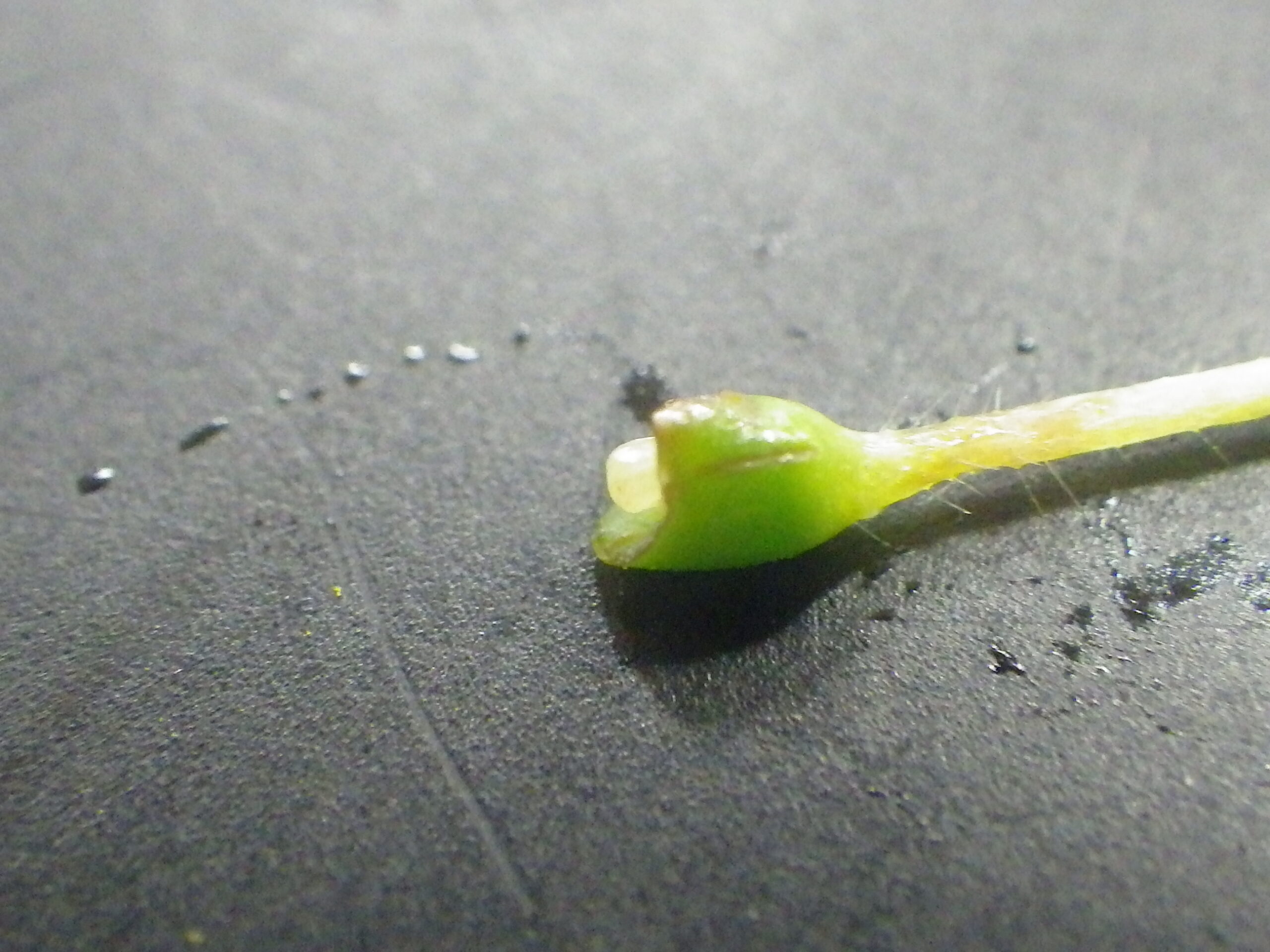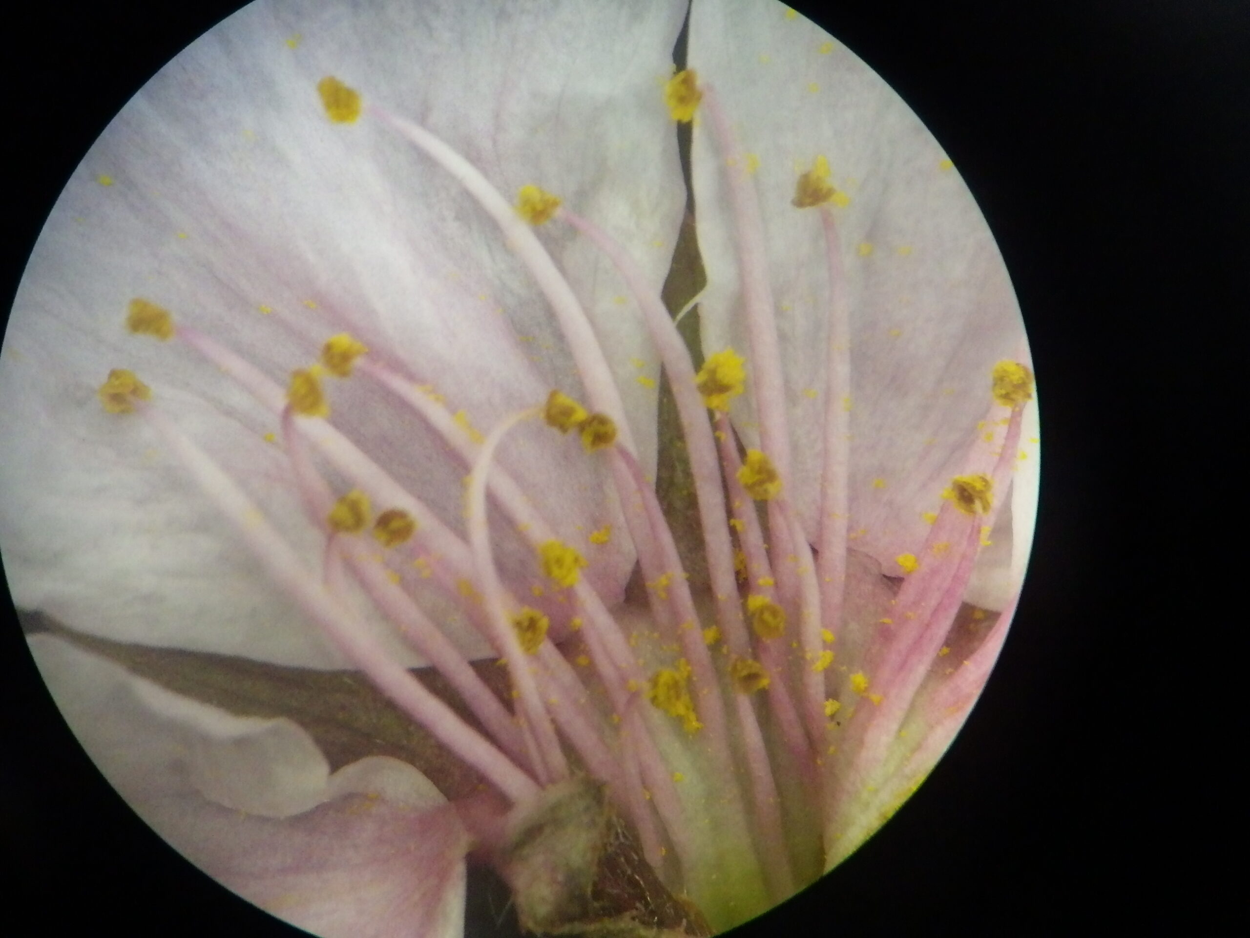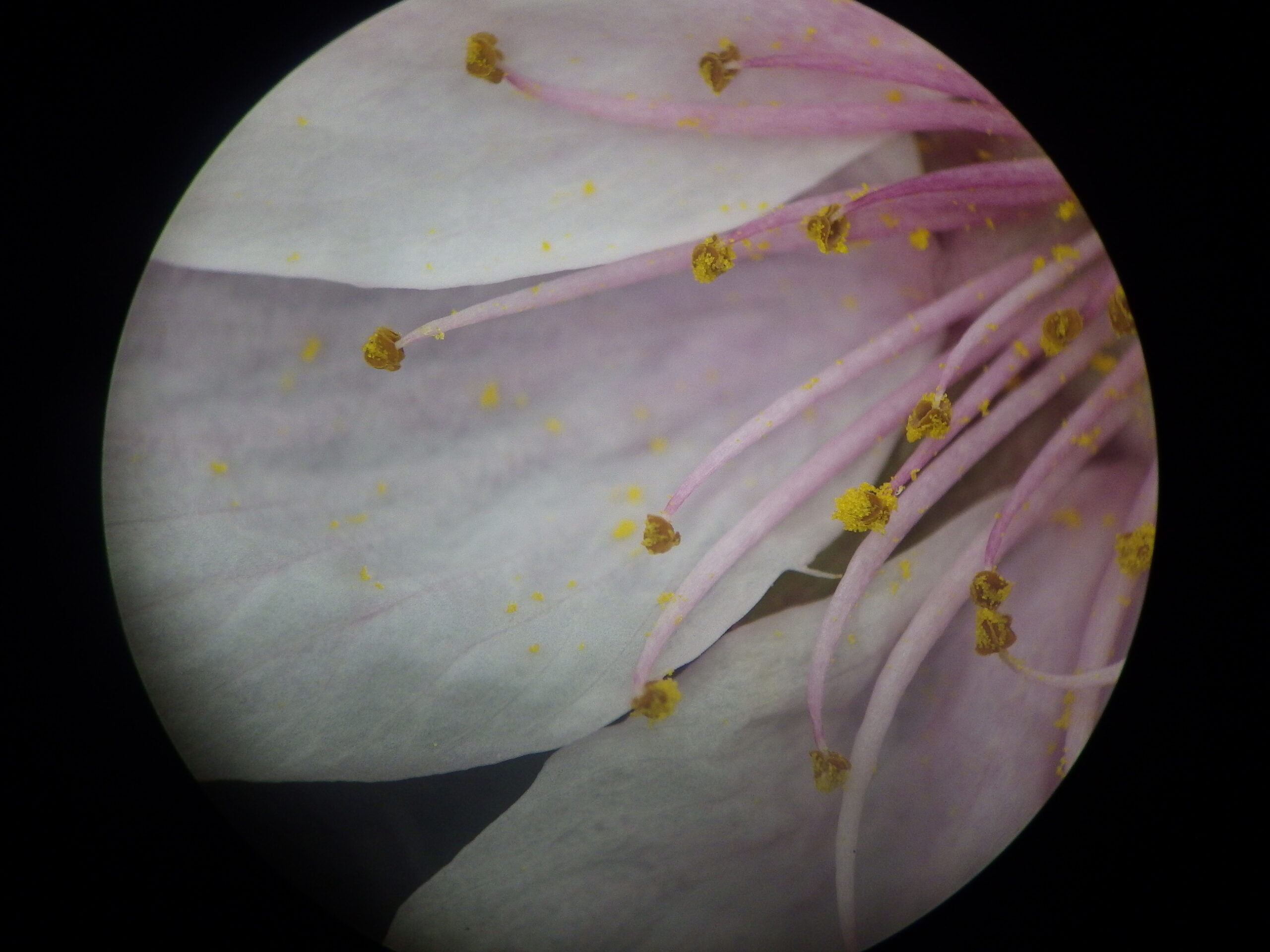 双眼実体顕微鏡で観察すると花粉がついていることが分かります。