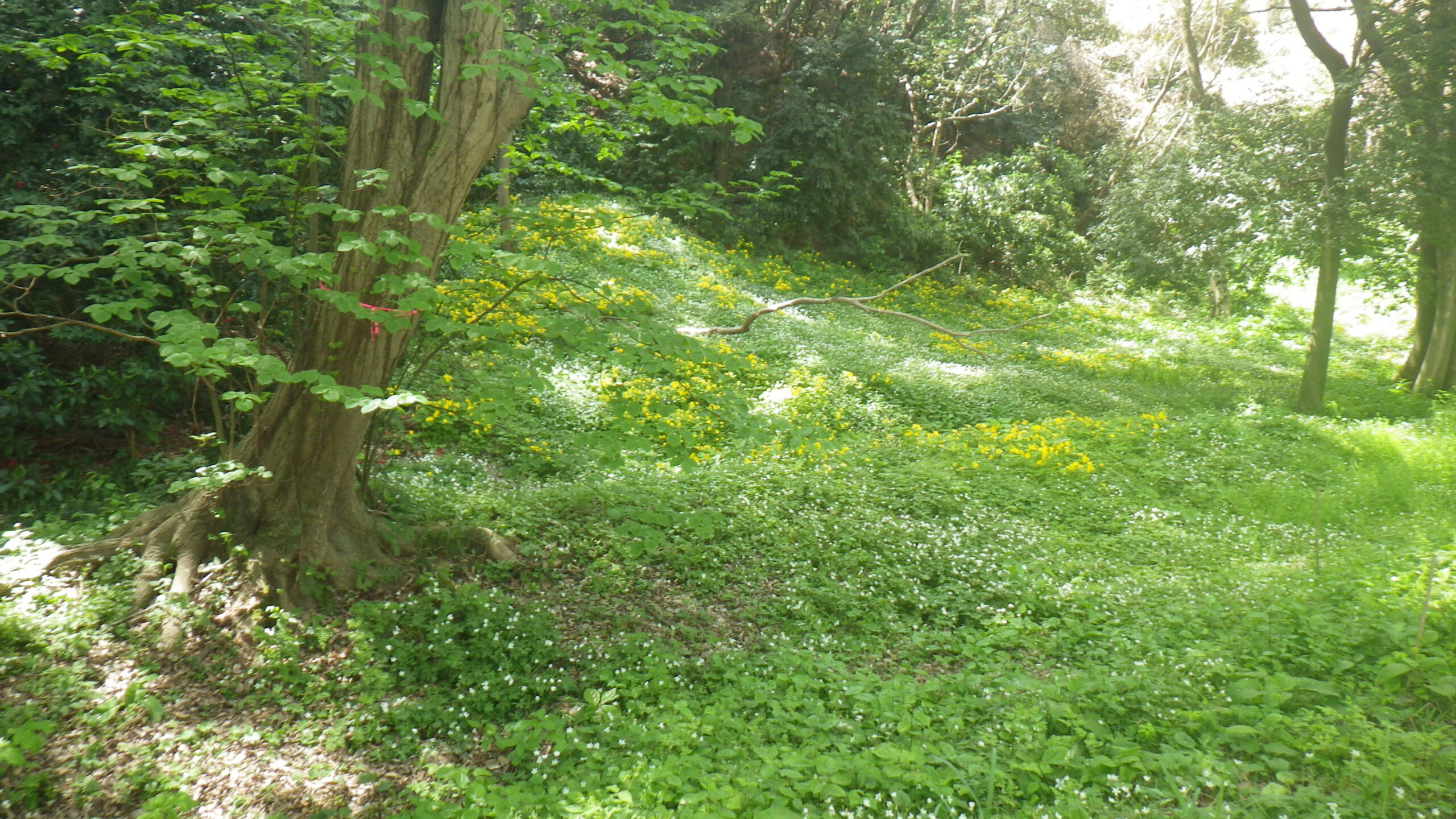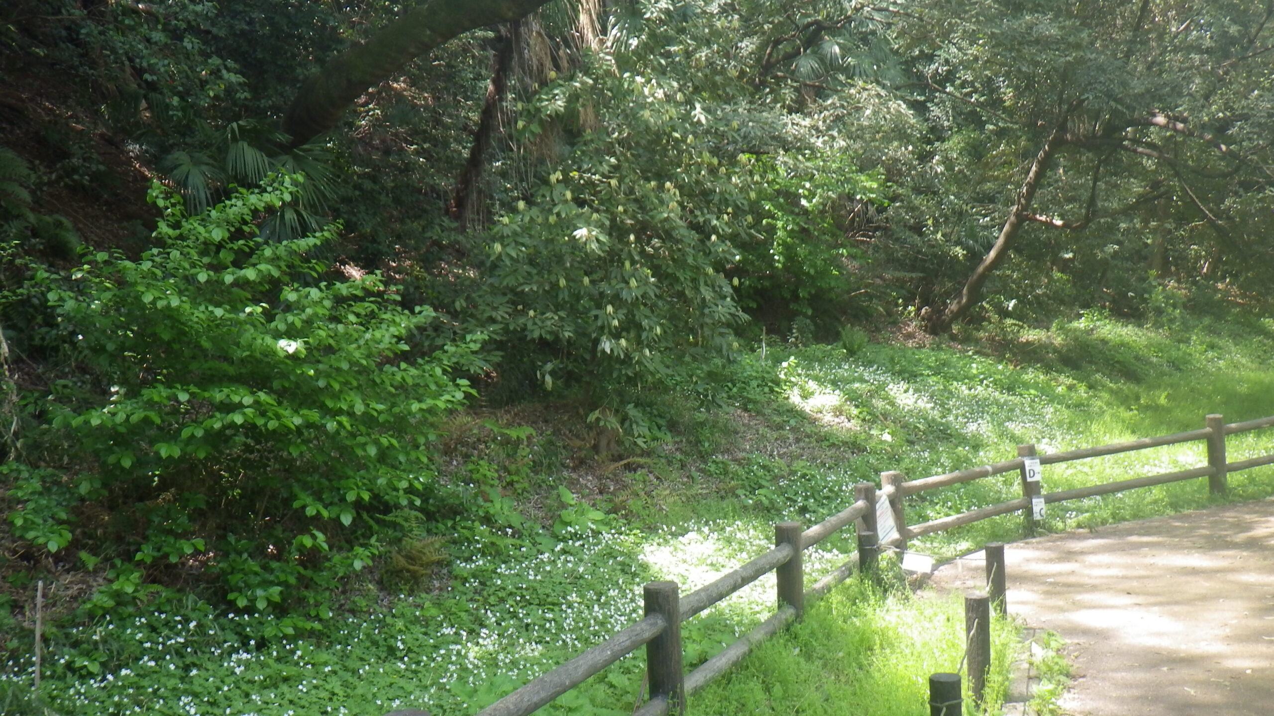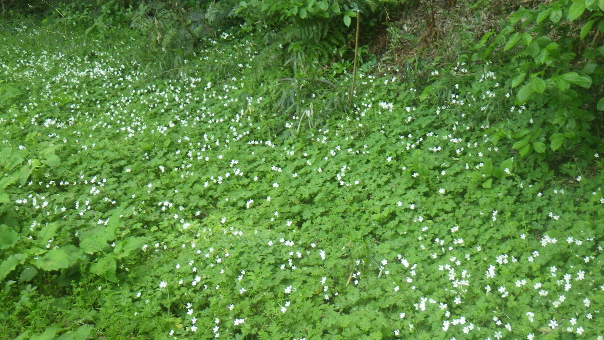 武蔵野台地の北東端である赤塚大地の崖線に沿って幅10~20m程度、東西約200mにわたってシーズンになるとニリンソウの群生が見られます。都内としては最大級でしょう。