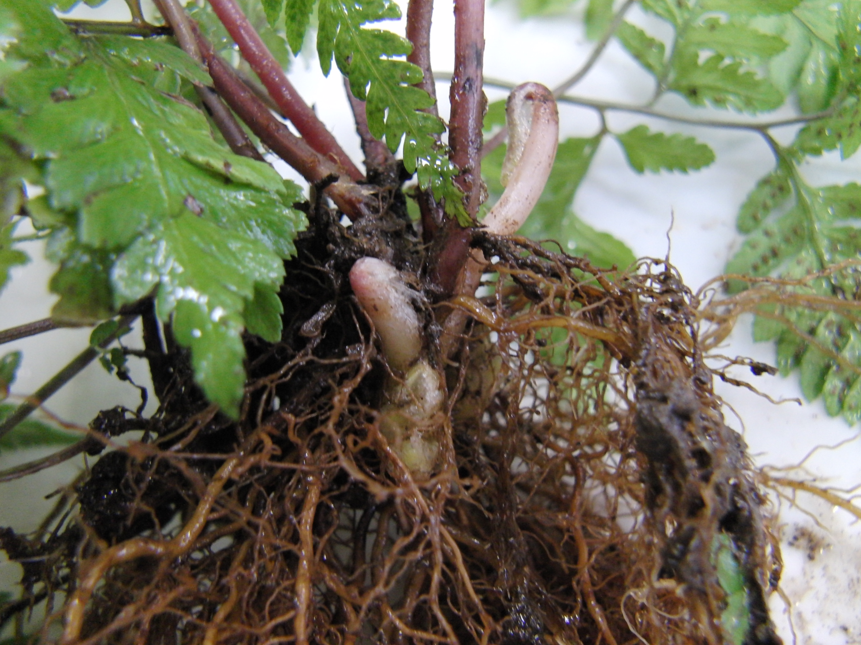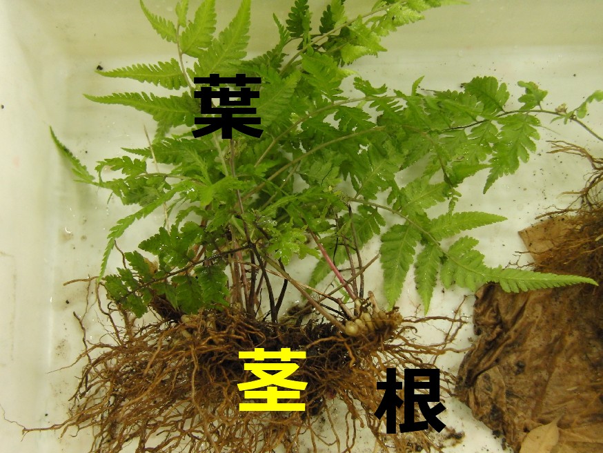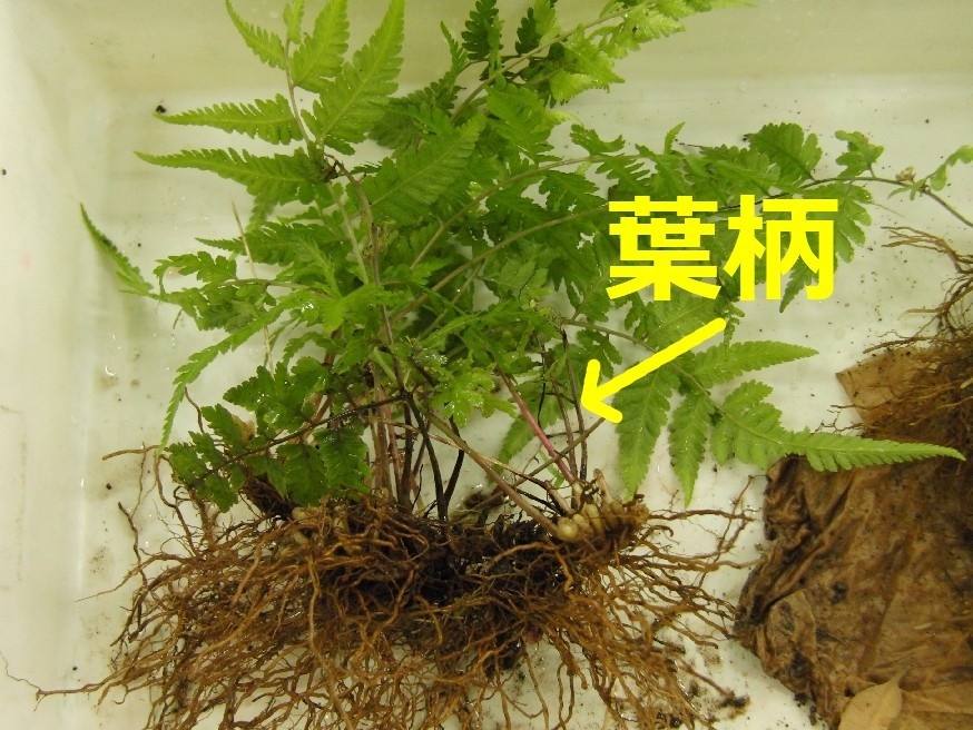 で、このイヌワラビ、根、茎、葉がきちんとあります。