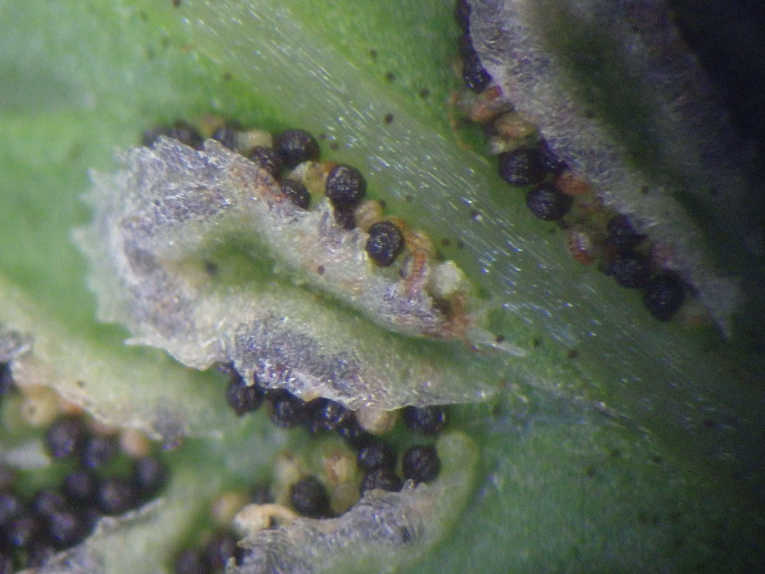 ソーラスを拡大すると、黒い丸い粒が見えます。この粒1個1個が胞子のうです。