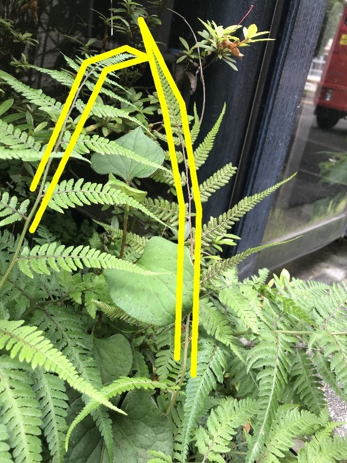 なんてことはせず、そこら辺に生えていたイヌワラビを根っこから抜いてみました。
