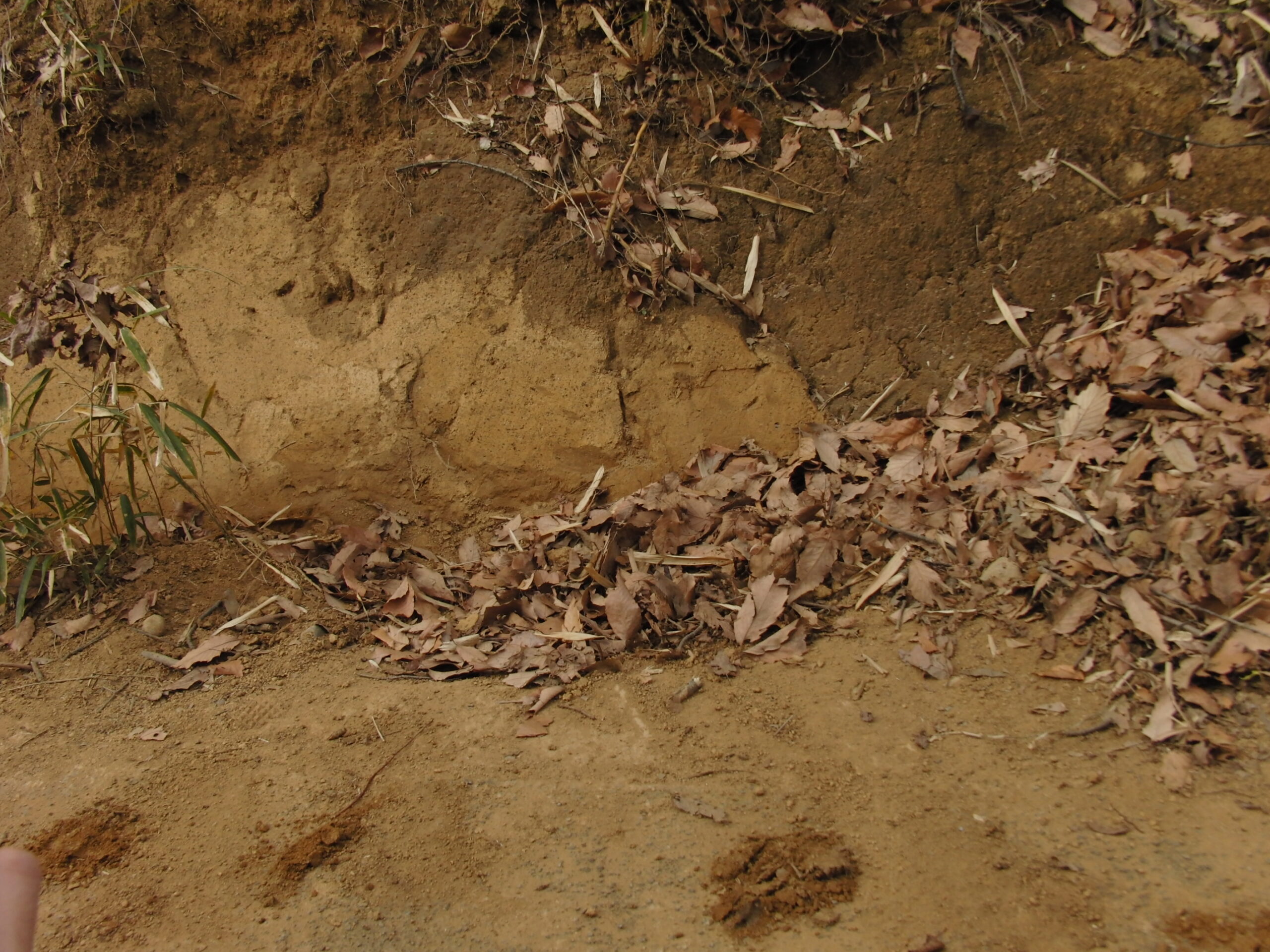 そこから少し降りて立川ローム層の最上部。1万年前の富士山などによる火山灰。