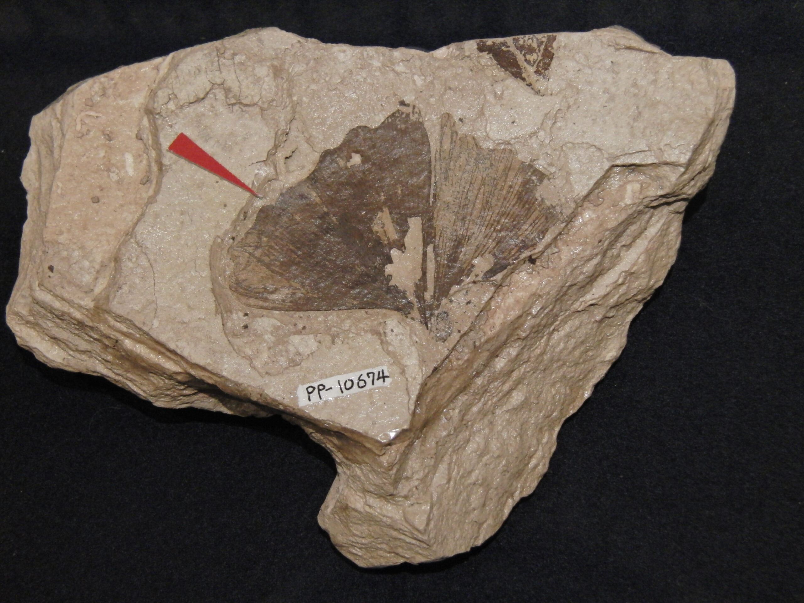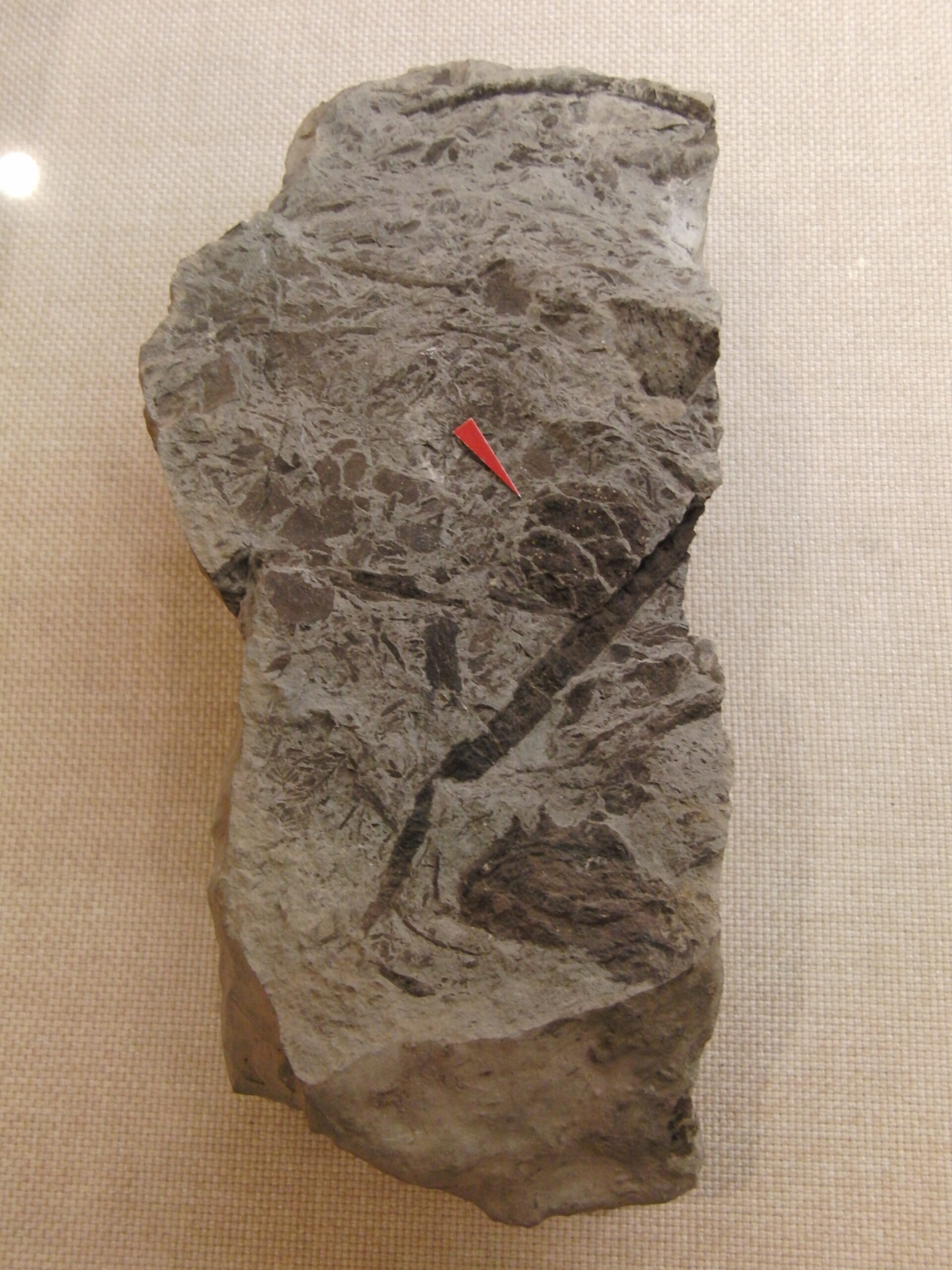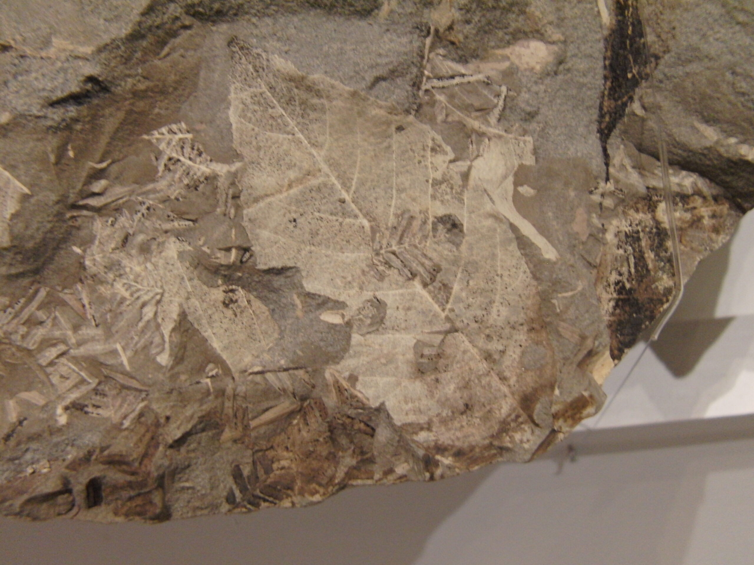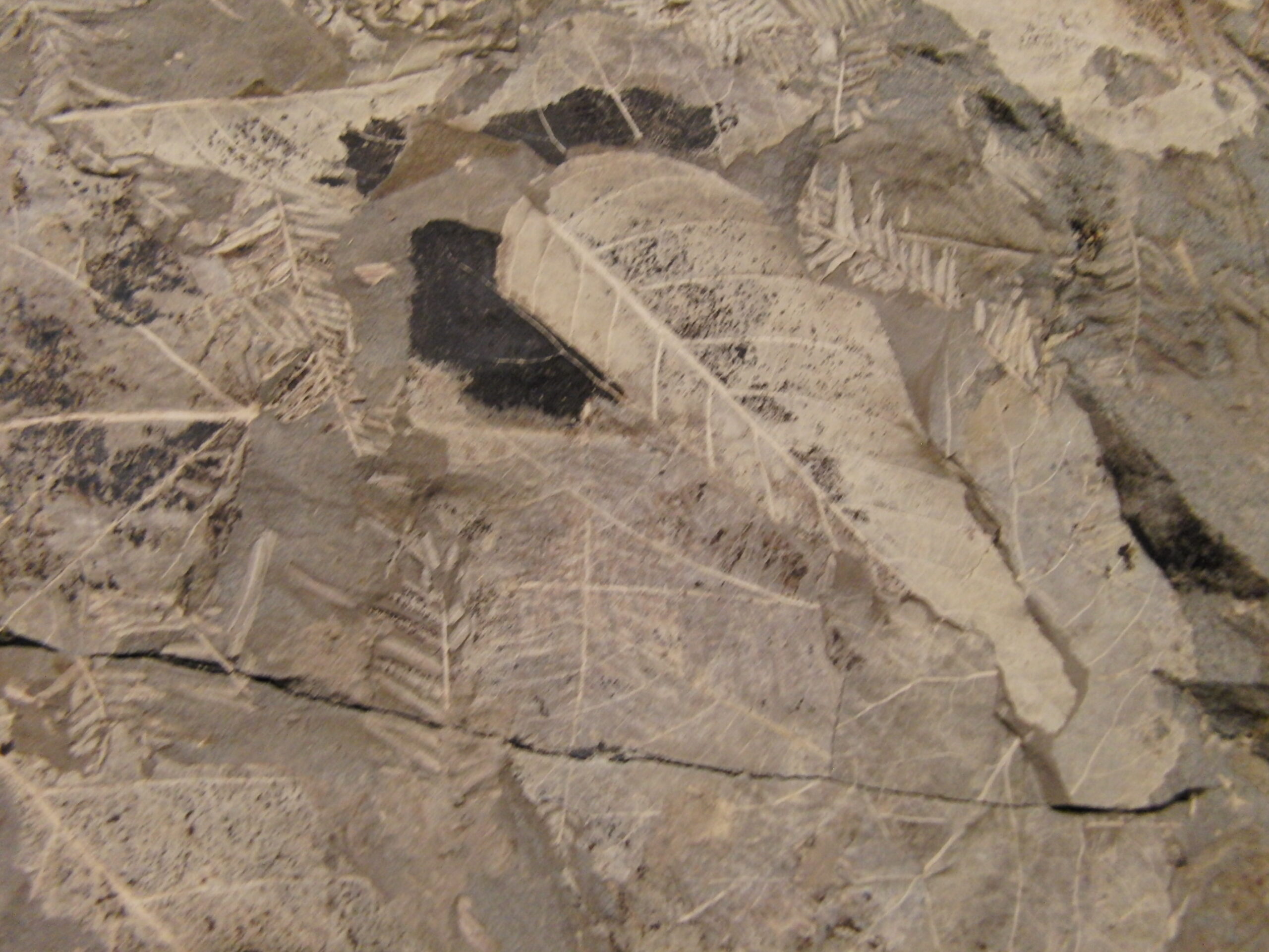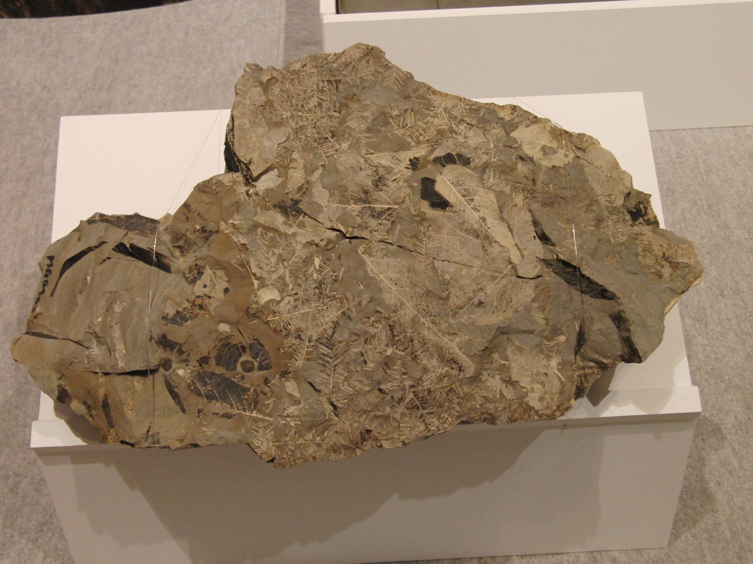下線御周辺でたまった地層に葉が密集する。メタセコイアが比較的近くにはえていたことが分かる。