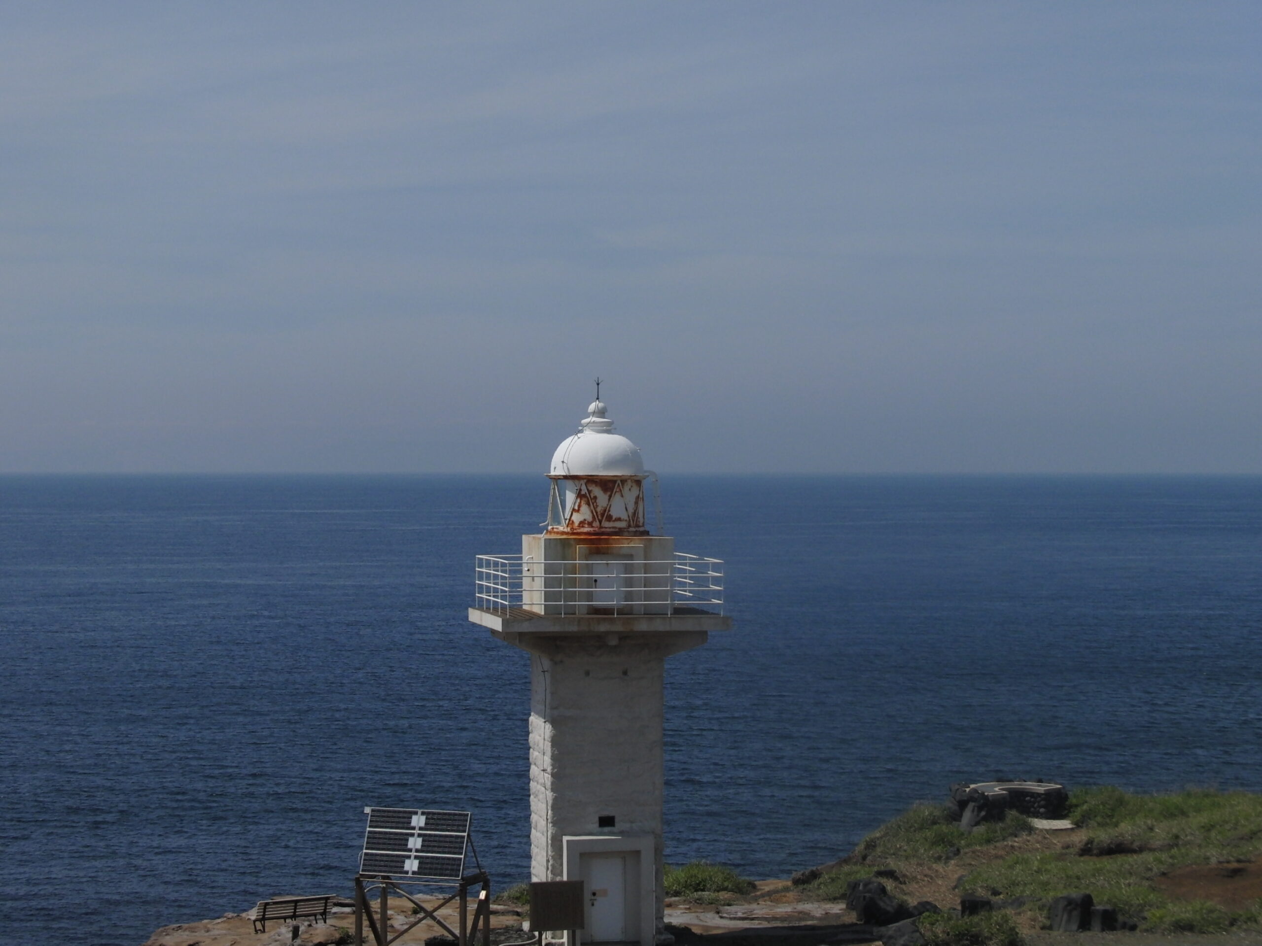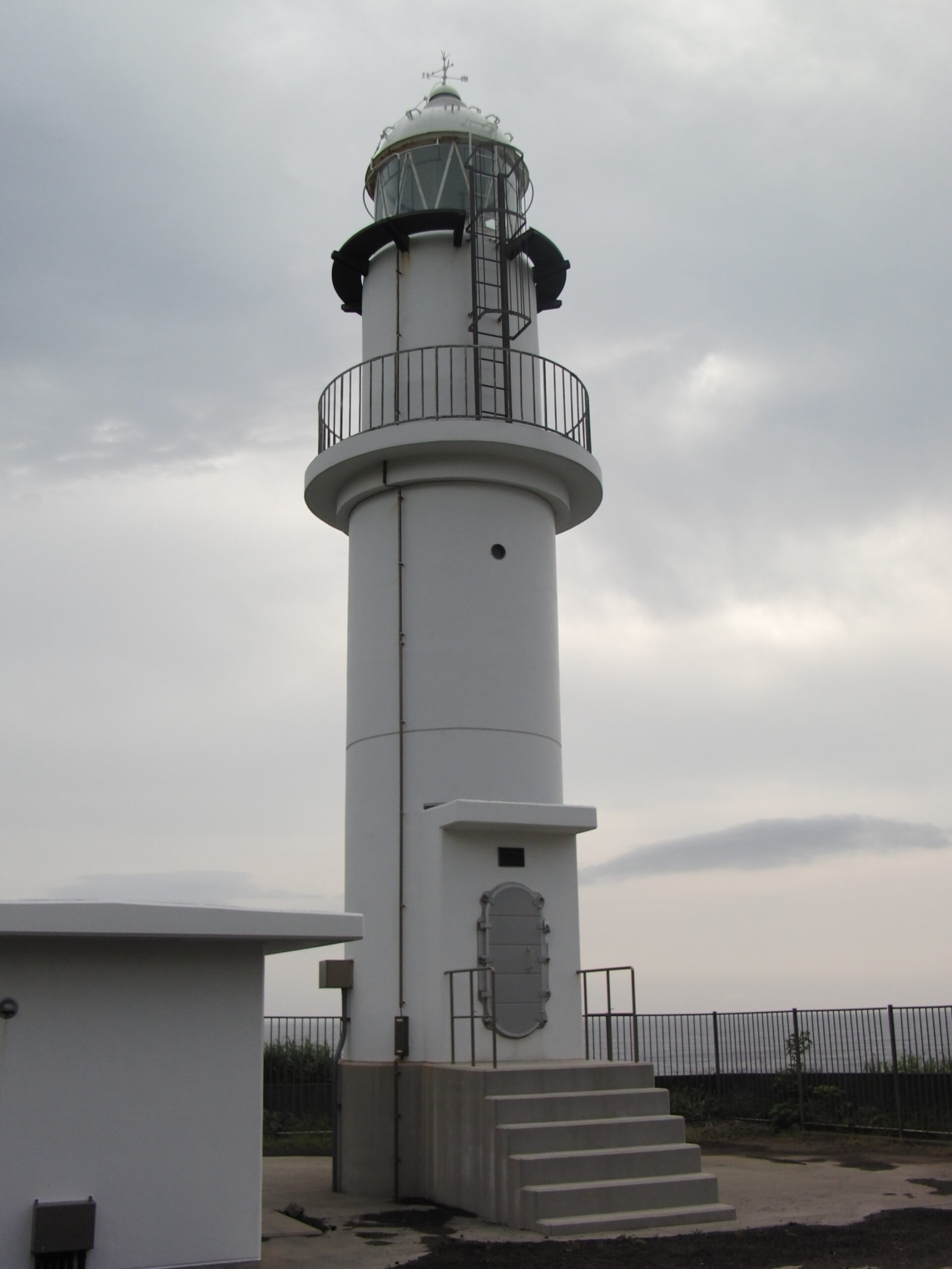 角柱形をした伊豆岬燈台は明治42年に建造された純白のランプ式無人灯台です。