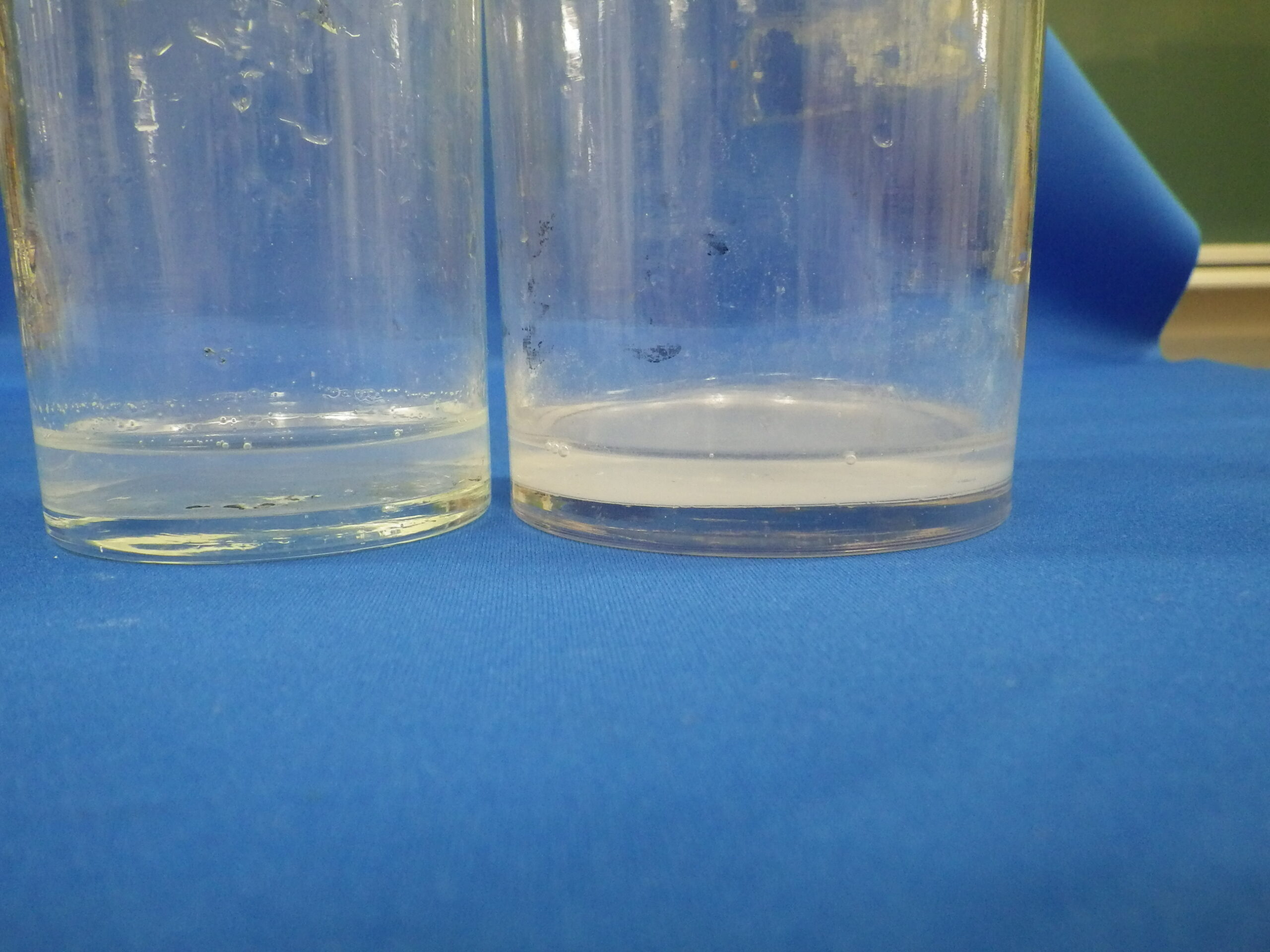 先ほどの有機物の燃焼後の石灰水(右)と比べても違いがあります。