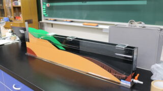 以前、津波の仕組みを説明するのには、ペットボトルの津波発生モデルを使っていましたが、もっと大きいものを使って、津波の発生する仕組みを説明する!ということで大学の予算で津波発生装置 HOLITON という装置を購入してもらいました。水槽。端に...