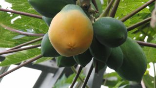 熱帯果樹の温室に入ってみました。バナナ グワバ バンジロウ(グワバ) バンレイシ シロサボテ コーヒーノキ タチバナアデク カカオ パパイヤ