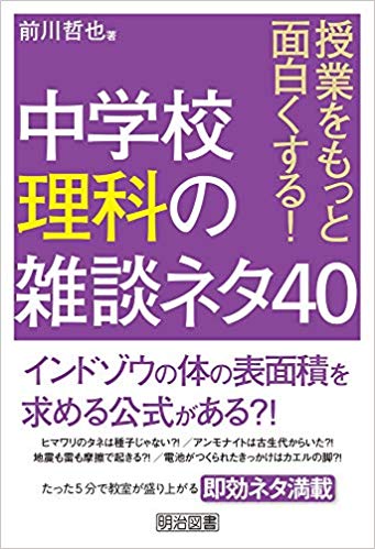 講師・執筆・ご相談など 2147 授業をもっと面白くする! 中学校理科の雑談ネタ40 授業をもっと面白くする! 中学校理科の雑談ネタ40旧ブログ 2019/06/20 更新分 重版して絶賛発売中!明治図書から「授業をもっと面白くする! 中学校理科の雑談ネタ40」が刊行されました。授業をするにあたり、発問や板書のような中心的な... 2026.01.04 講師・執筆・ご相談など